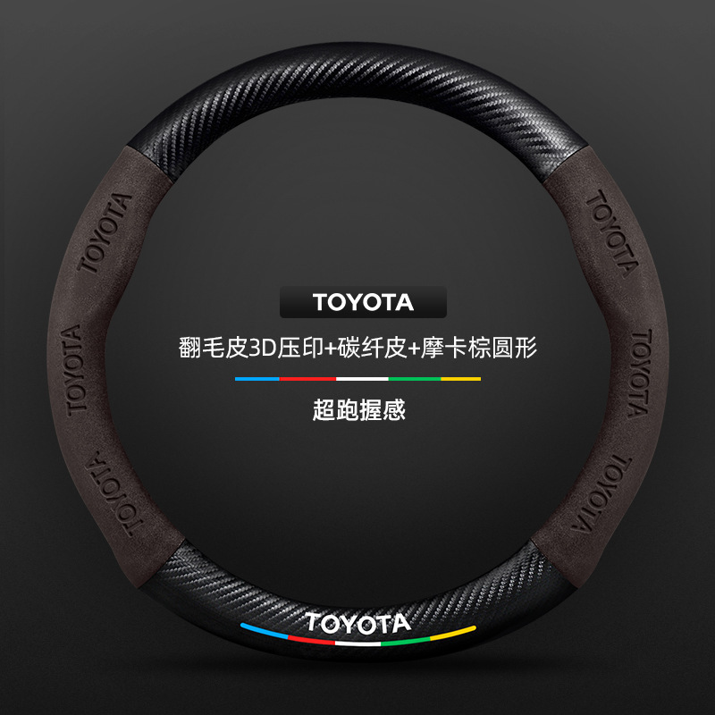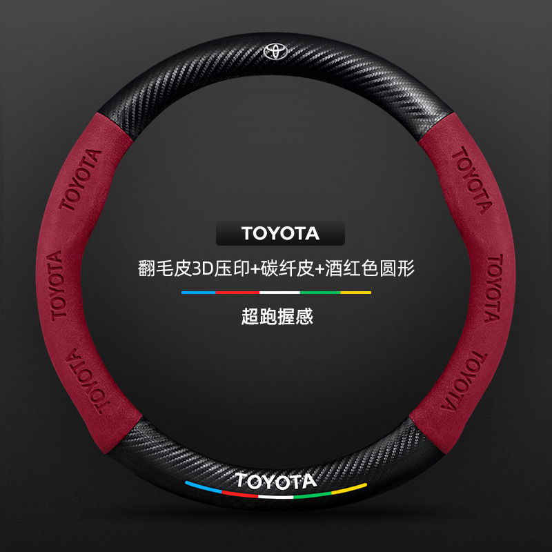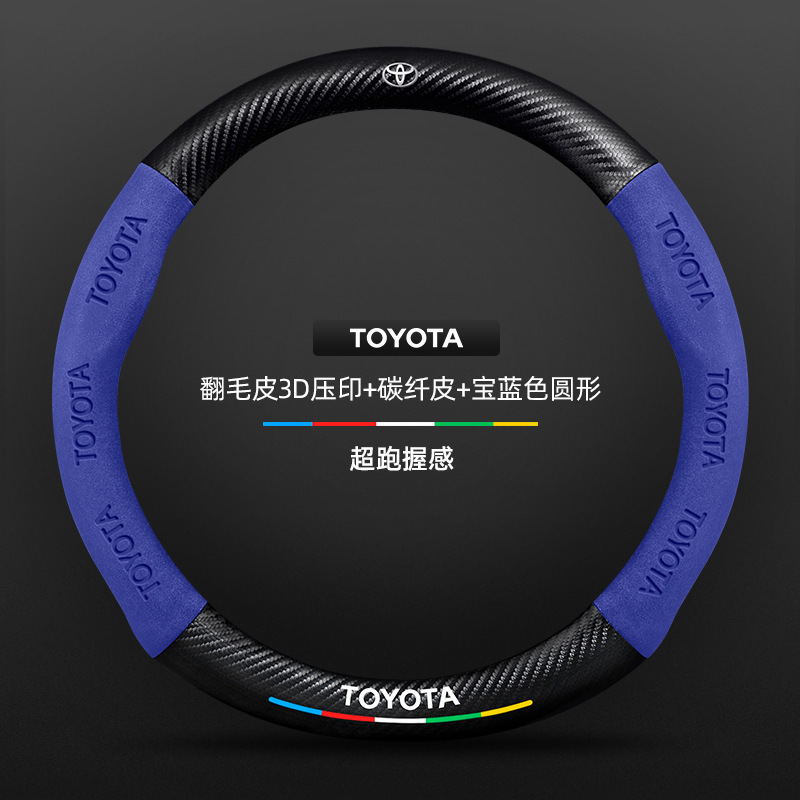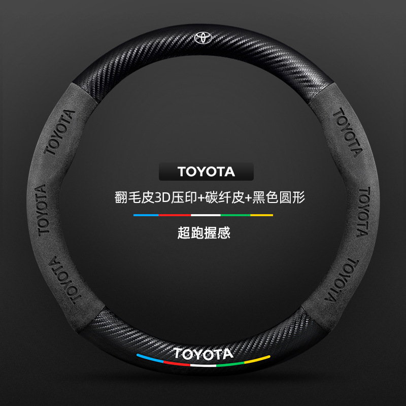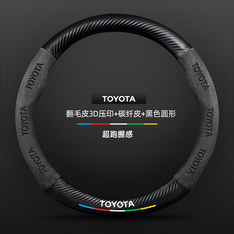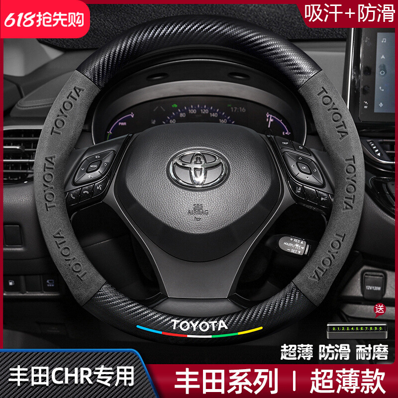 Toyota chr 스티어링 휠 커버에 적합 18-23 모델 정품 가죽 스웨이드 사계절 범용 탄소 섬유 자동차 핸들 커버