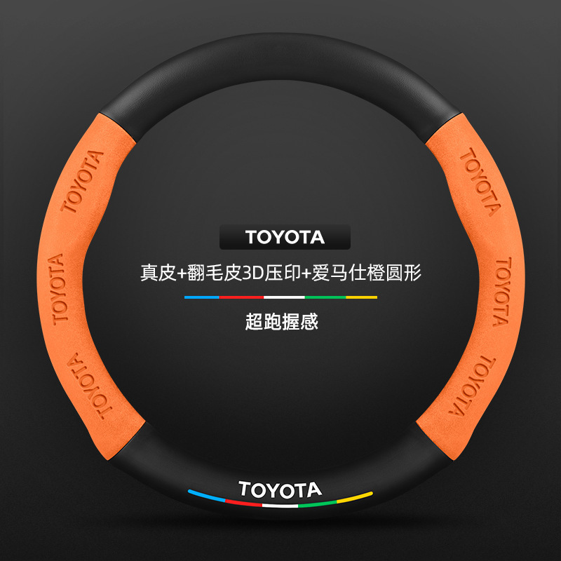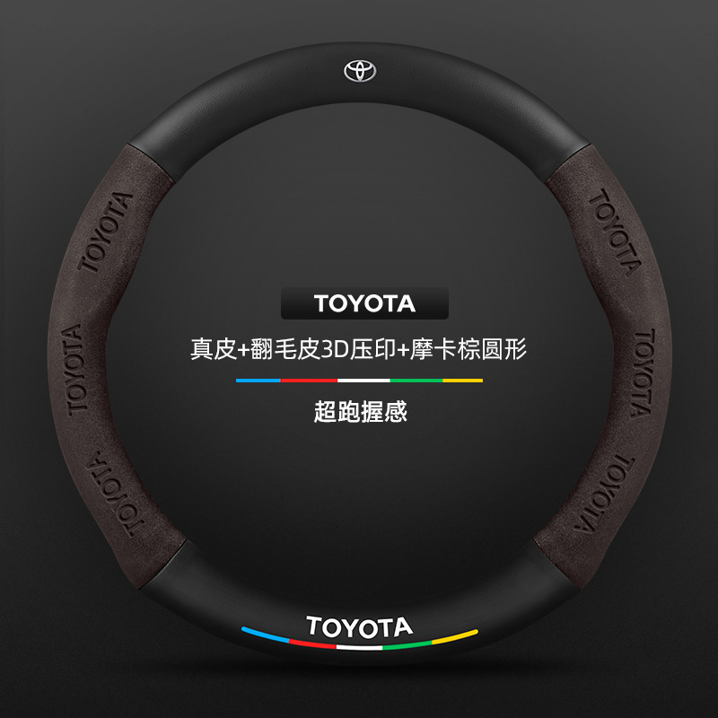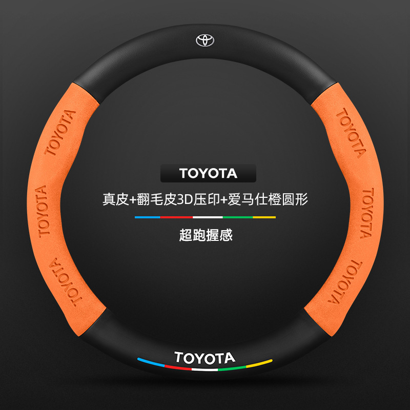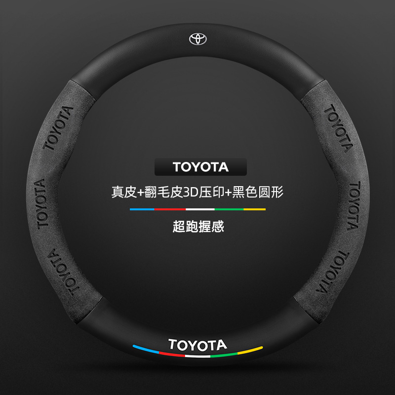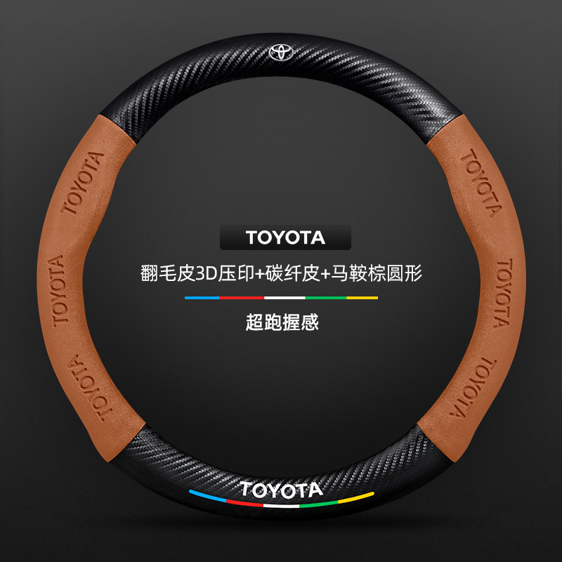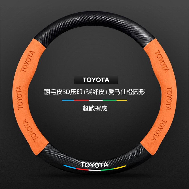 Toyota chr 스티어링 휠 커버에 적합 18-23 모델 정품 가죽 스웨이드 사계절 범용 탄소 섬유 자동차 핸들 커버