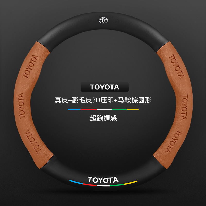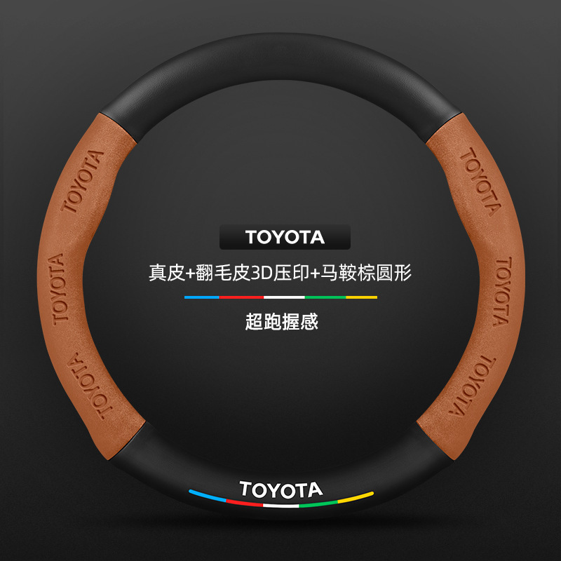• 천연가죽 스웨이드 3D 엠보싱 안장 브라운 라운드 토요타 로고