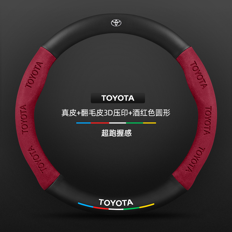• 천연가죽 스웨이드 3D 엠보싱 버건디 라운드 토요타 로고
