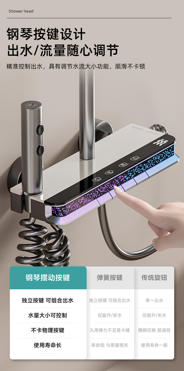국경 간 도매 홈 스마트 분위기 조명 디지털 디스플레이 인터넷 연예인 피아노 버튼 욕실 부스터 노즐 레인 샤워
