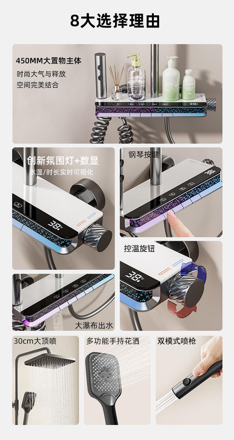 국경 간 도매 홈 스마트 분위기 조명 디지털 디스플레이 인터넷 연예인 피아노 버튼 욕실 부스터 노즐 레인 샤워스토어 가기