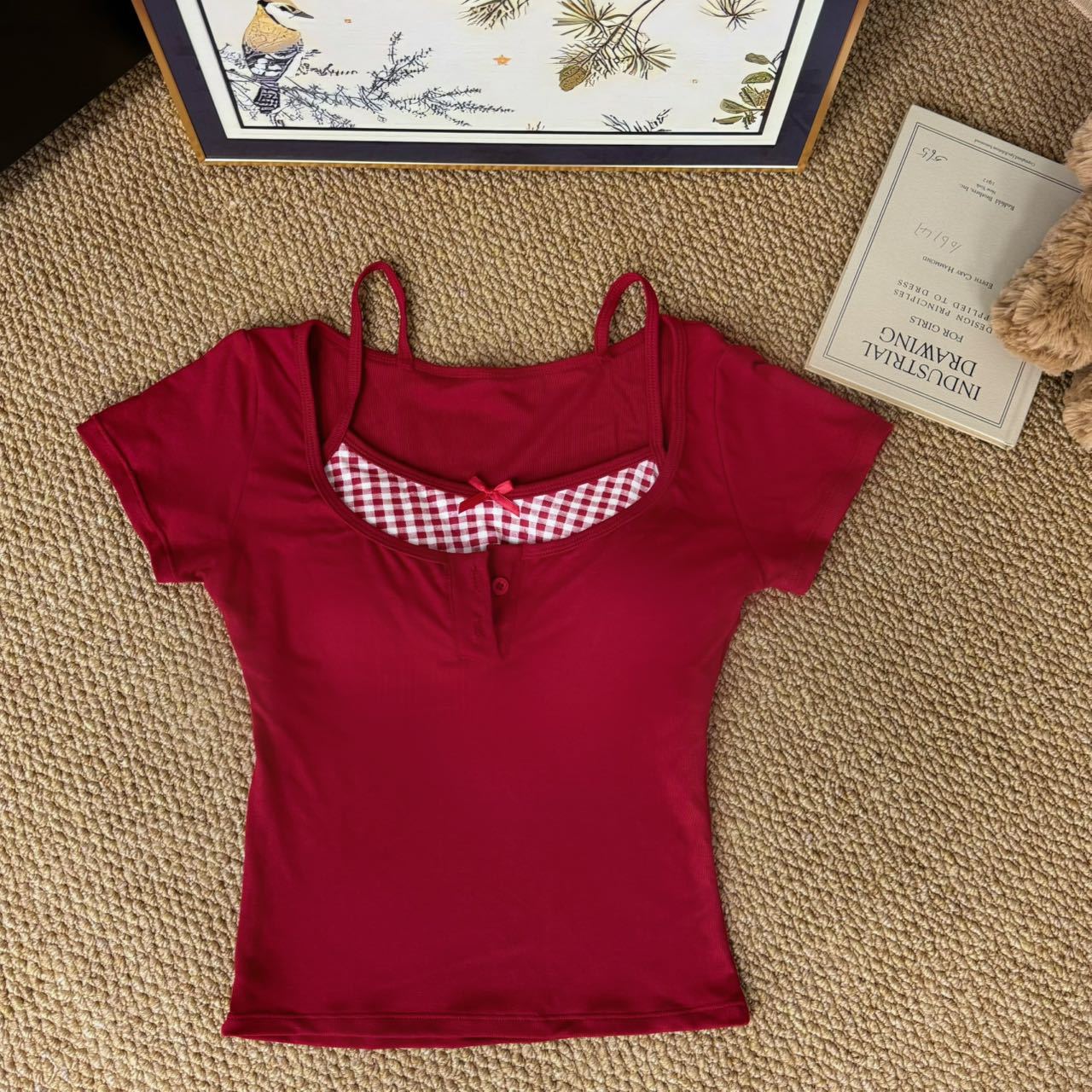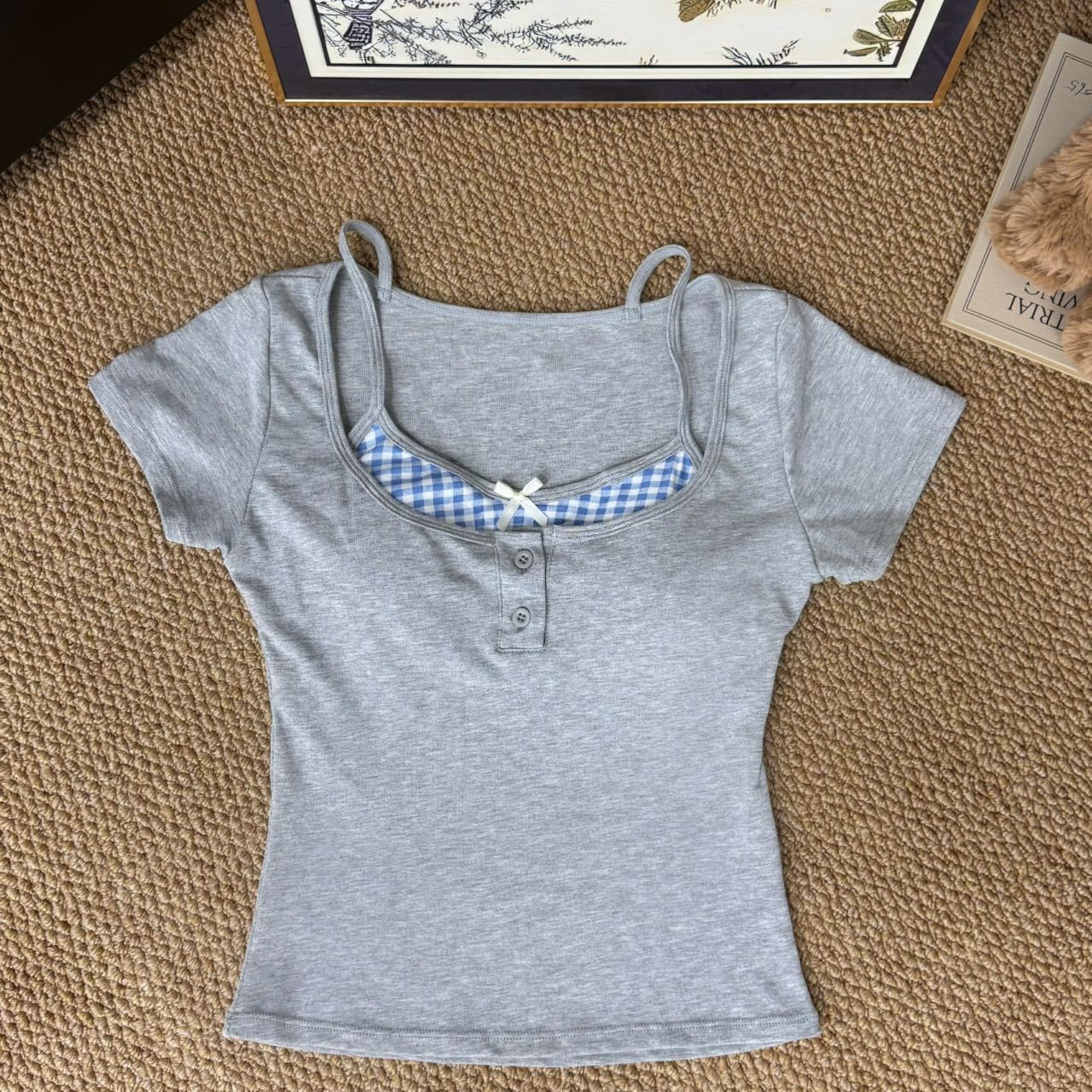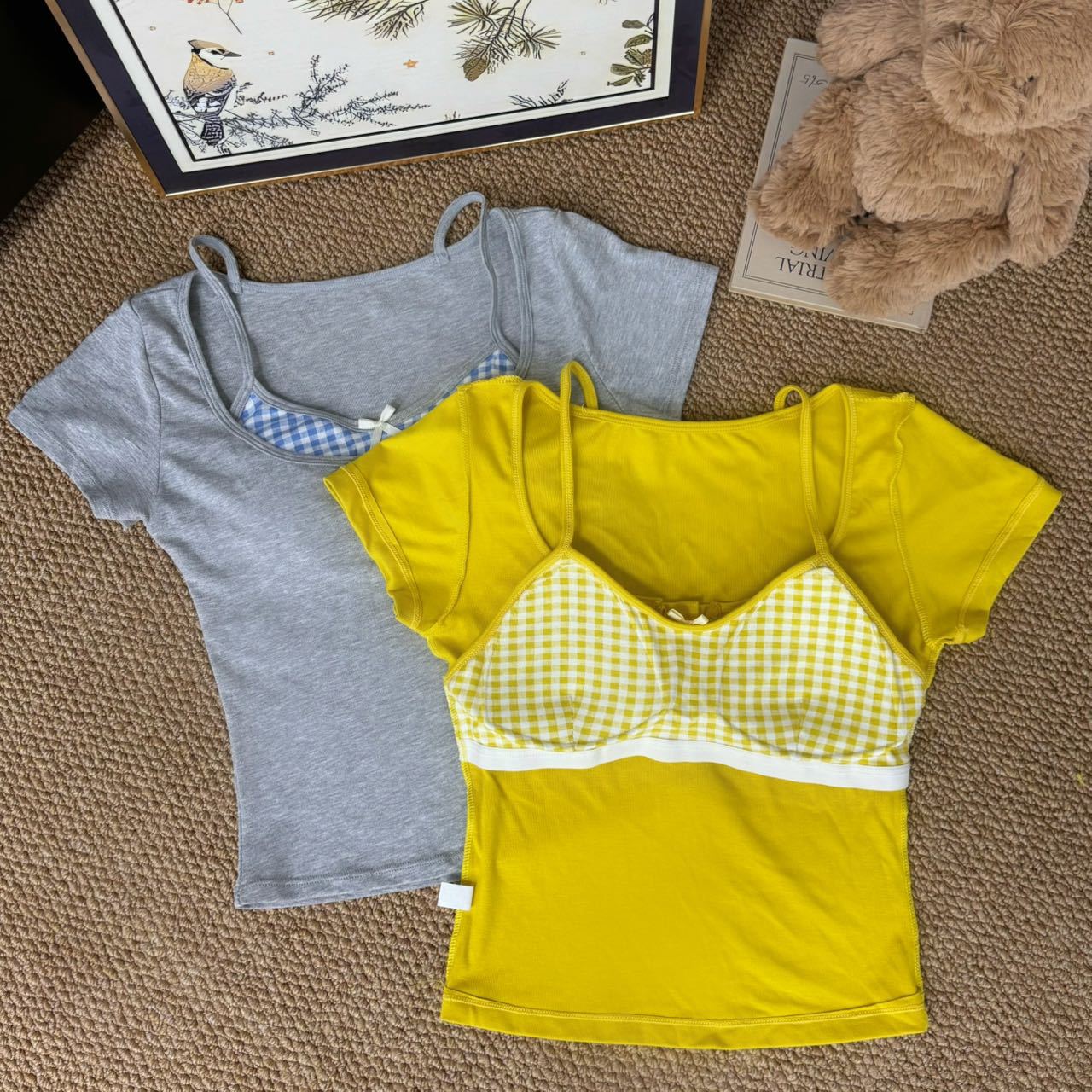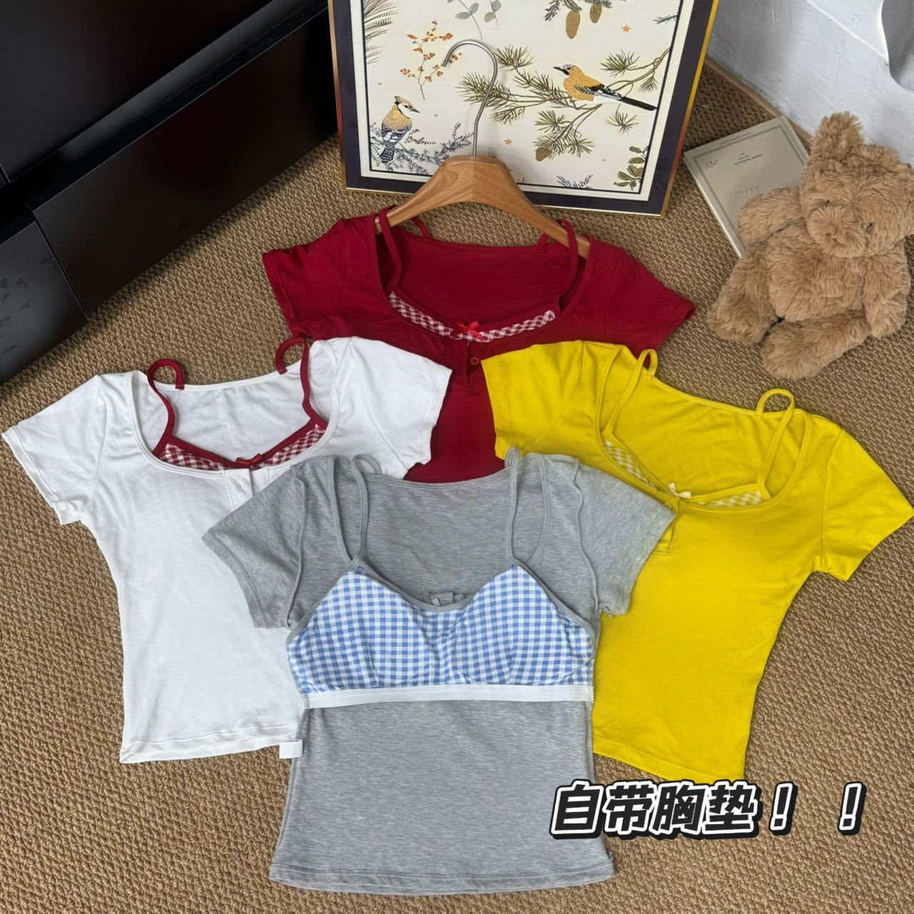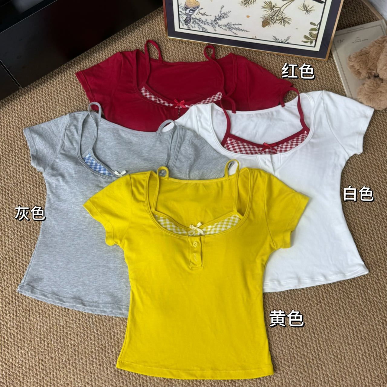 도파민 노란색 반 오픈 칼라 어깨 반팔 티셔츠 여성용 여름 디자인 센스 플리츠 슬림 핏 핫 걸 쇼트탑스토어 가기