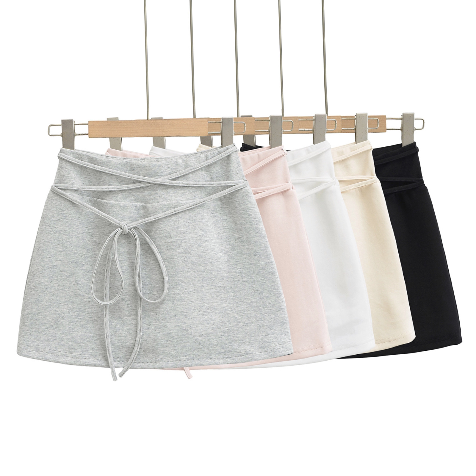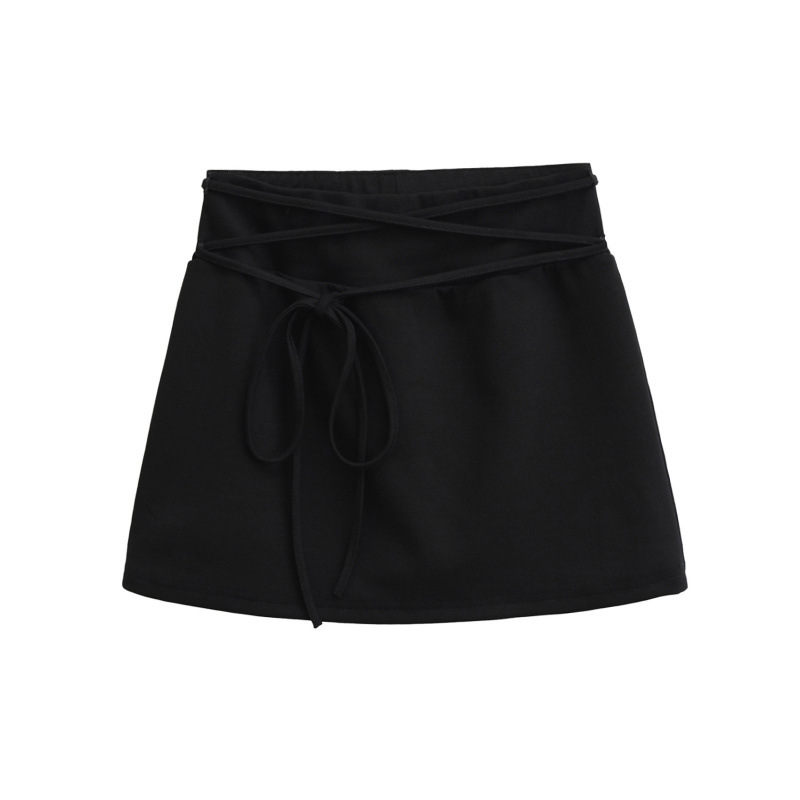 여름 순수한 욕망 스타일 스트랩 디자인 신축성있는 허리 짧은 스커트 핫 소녀 슬리밍 A 라인 스커트 노출 방지 미니 스커트