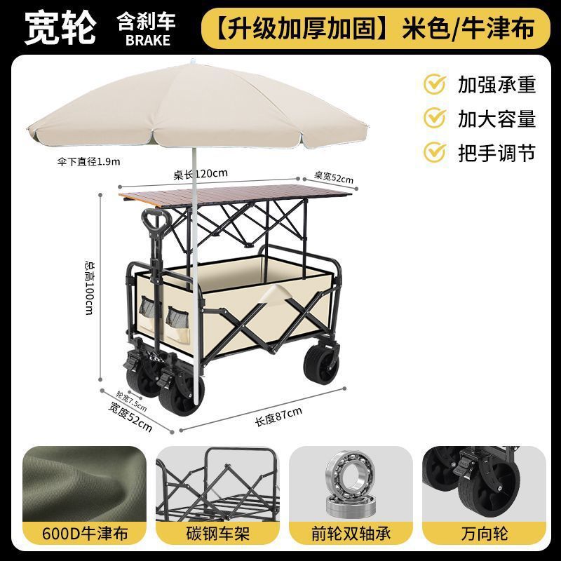 • 캠프카 + 접이식 스톨 테이블 - 대형 트레일러 탱크 휠(베이지색)