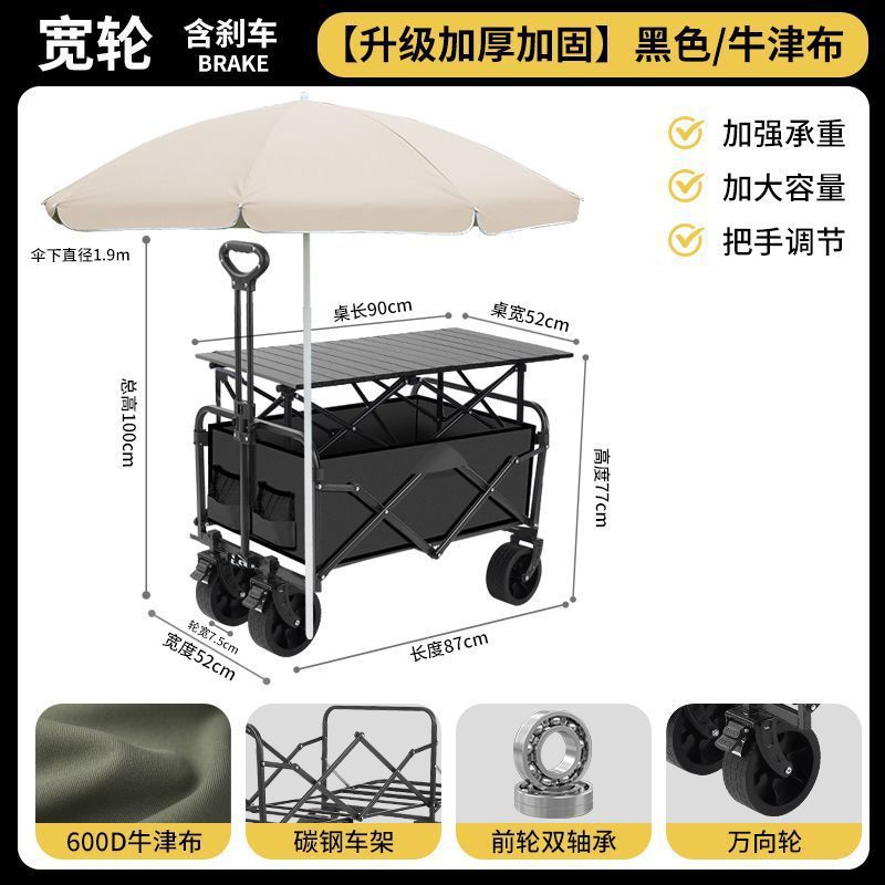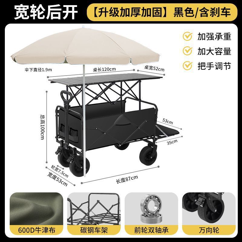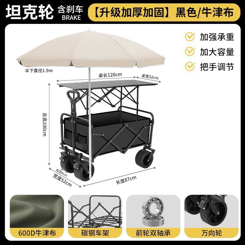 • 캠프카 + 접이식 테이블 - 대형 트레일러 탱크 휠(블랙)