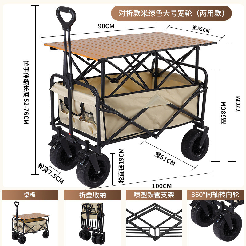 • 캠퍼밴 + 접이식 테이블 - 대형 트레일러 탱크 휠(카키색)