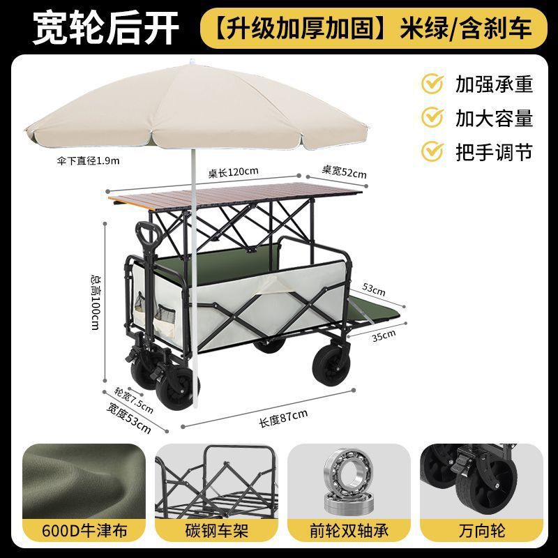 • 캠퍼밴 + 접이식 테이블 + 파라솔 - 브레이크가 장착된 대형 탱크 휠(카키색)