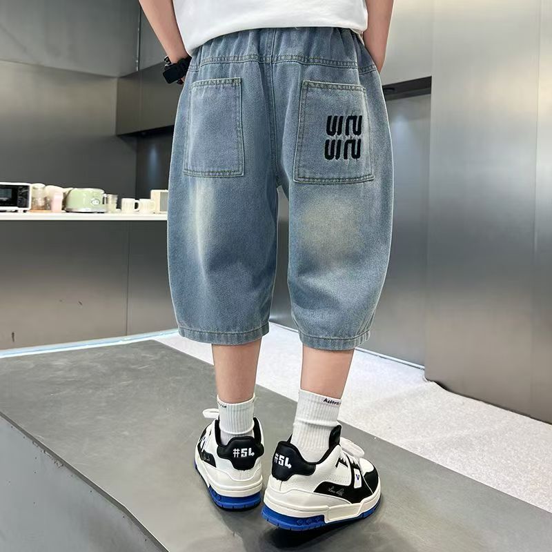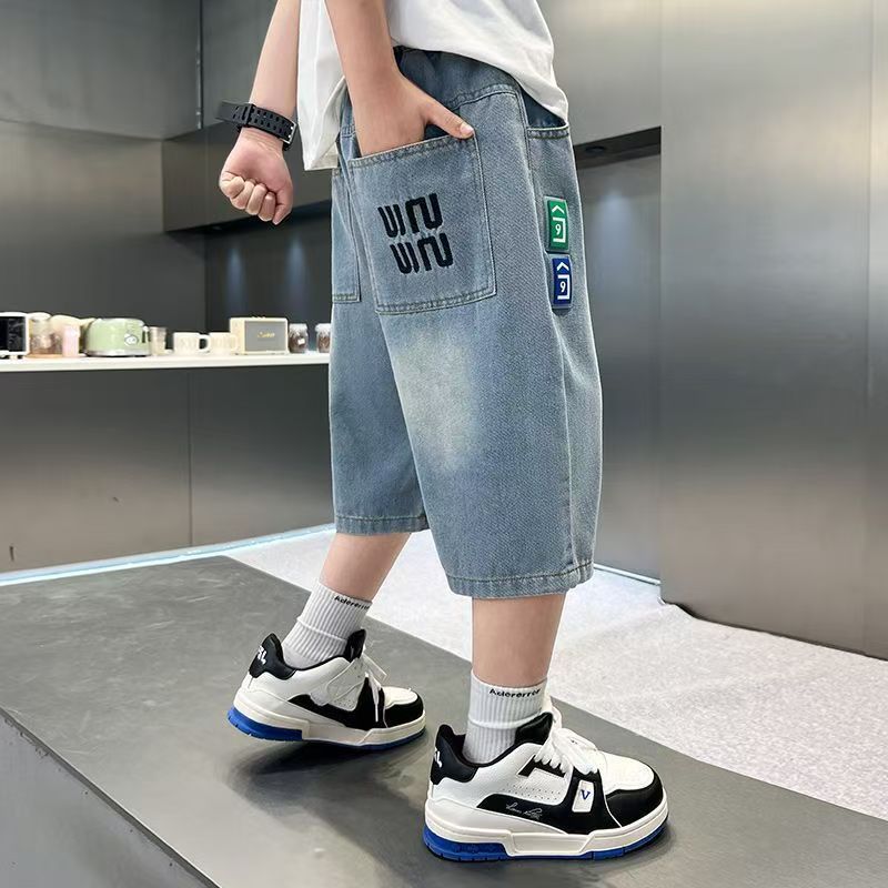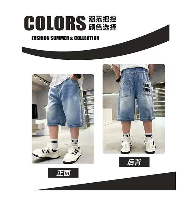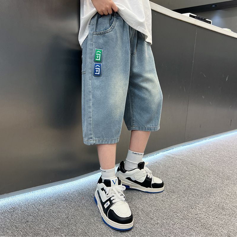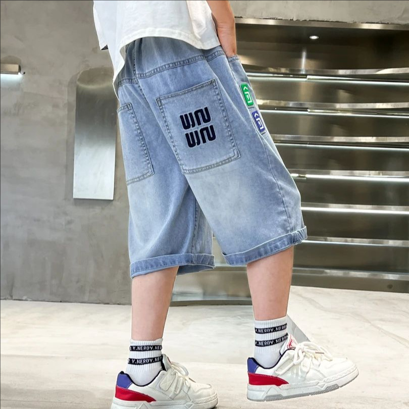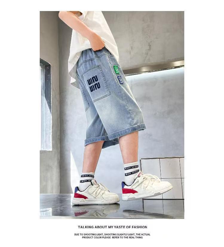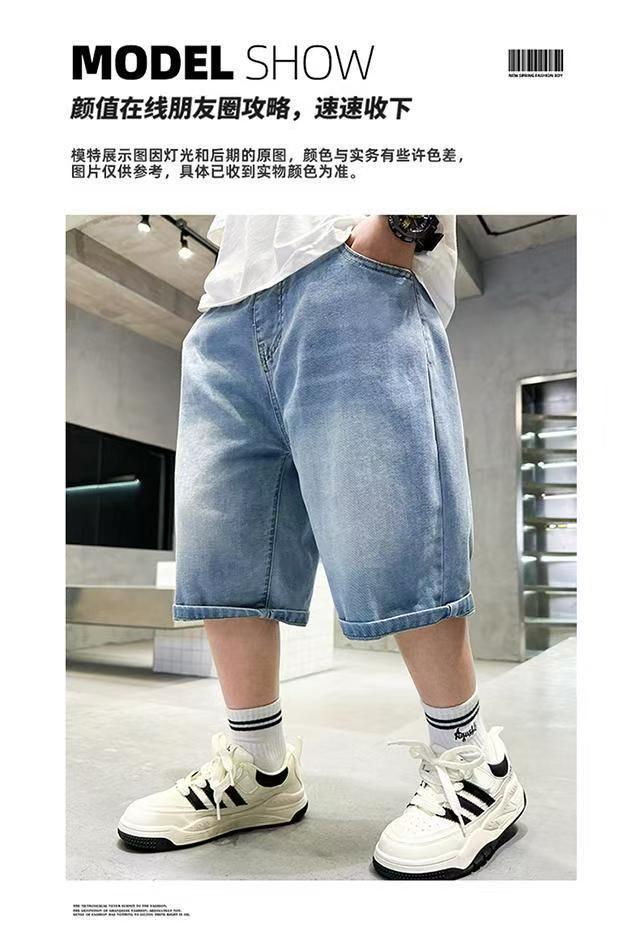 Zhongda 소년 여름 얇은 데님 반바지, 루즈하고 편안한 하이웨이스트 팬츠, 패셔너블하고 다재다능한 반바지