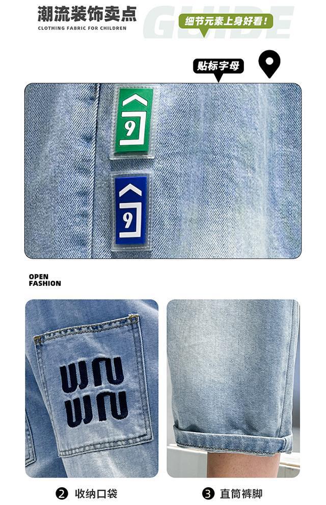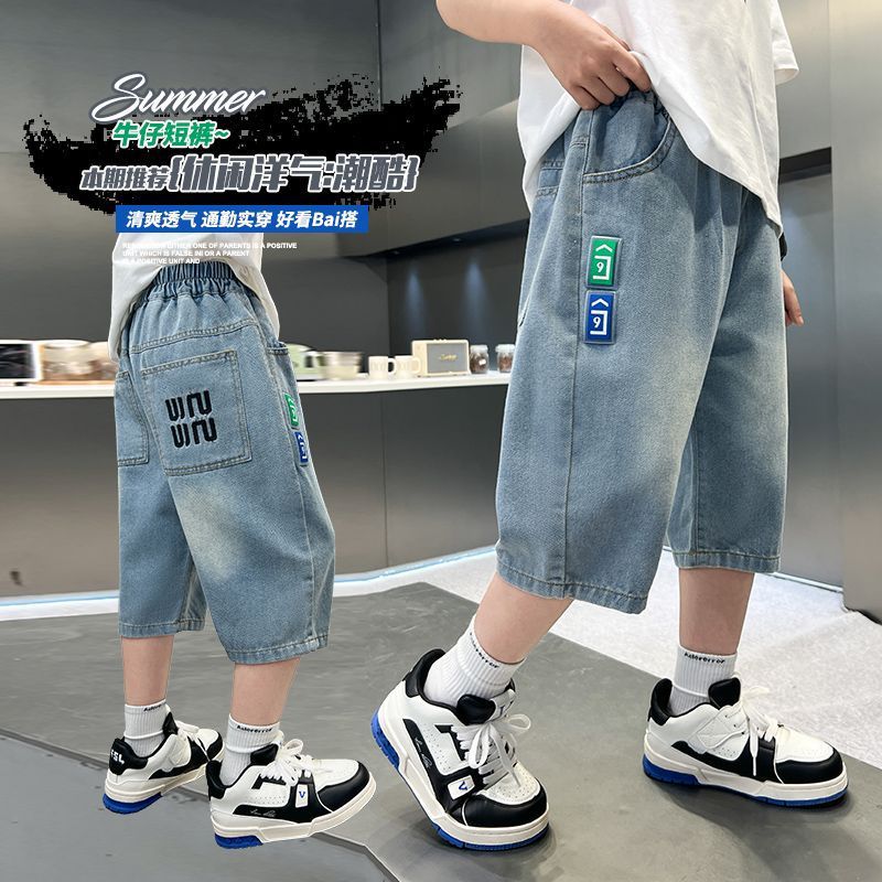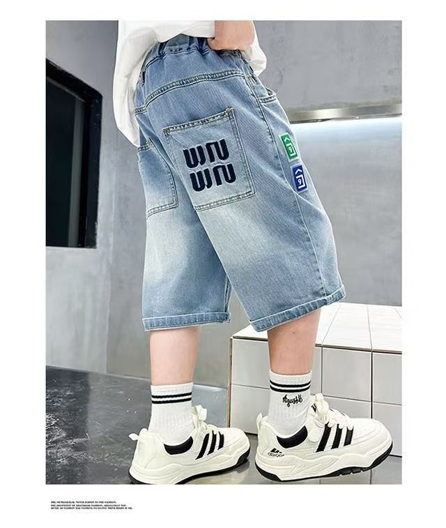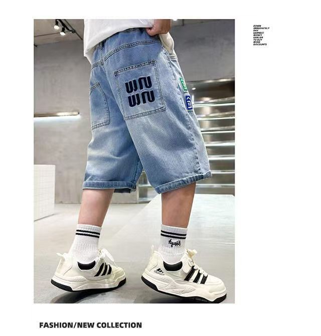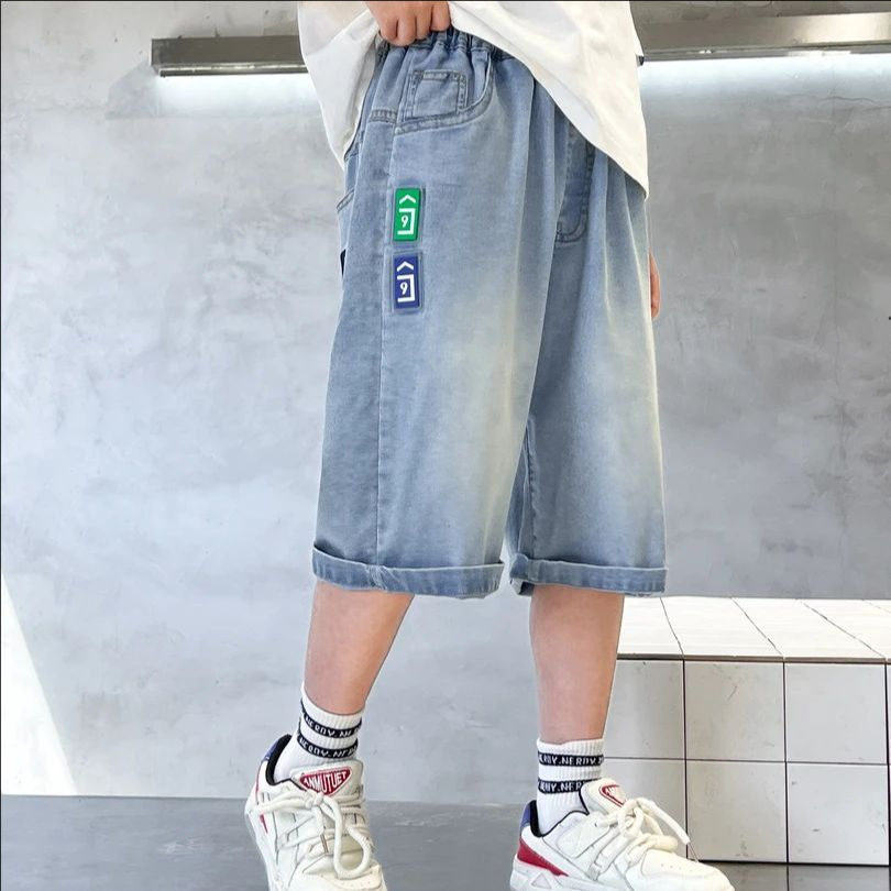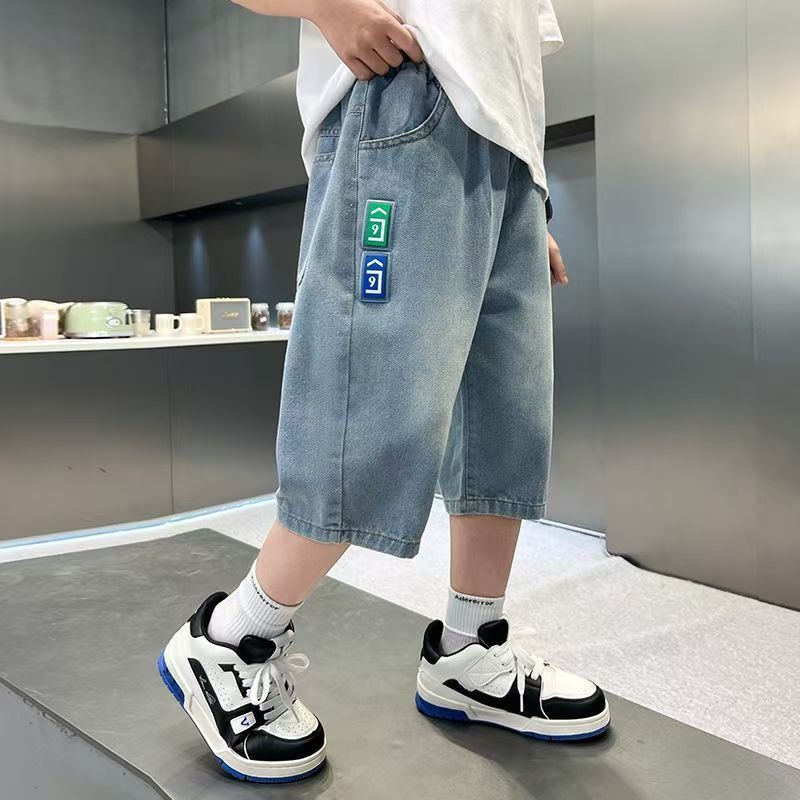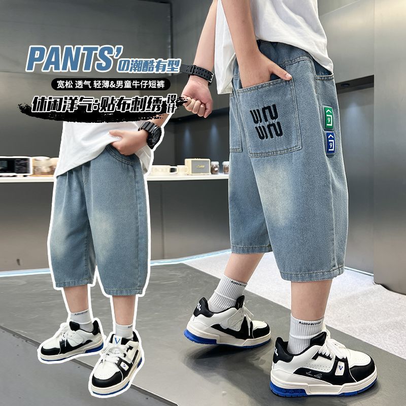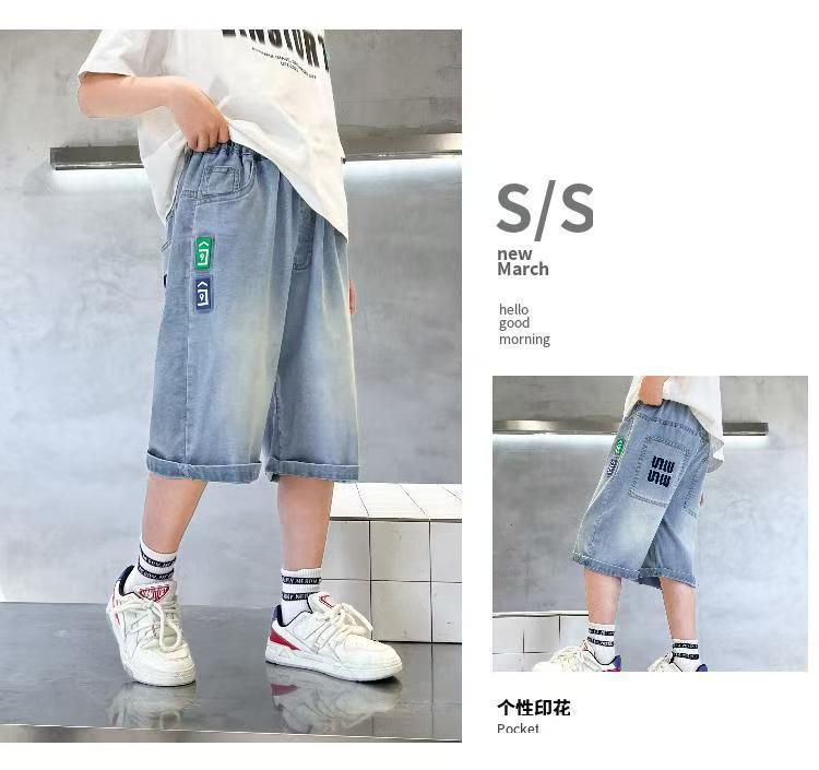 Zhongda 소년 여름 얇은 데님 반바지, 루즈하고 편안한 하이웨이스트 팬츠, 패셔너블하고 다재다능한 반바지
