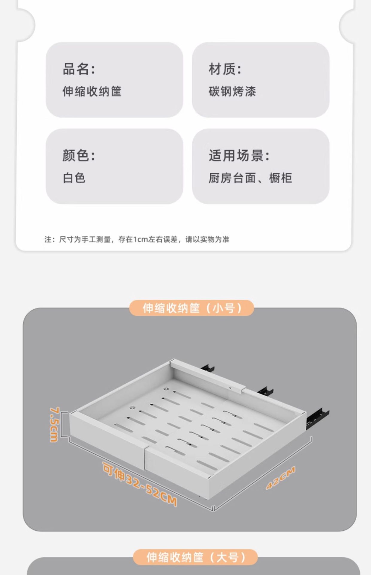 • 작은 흰색 텔레스코픽 풀아웃 바구니