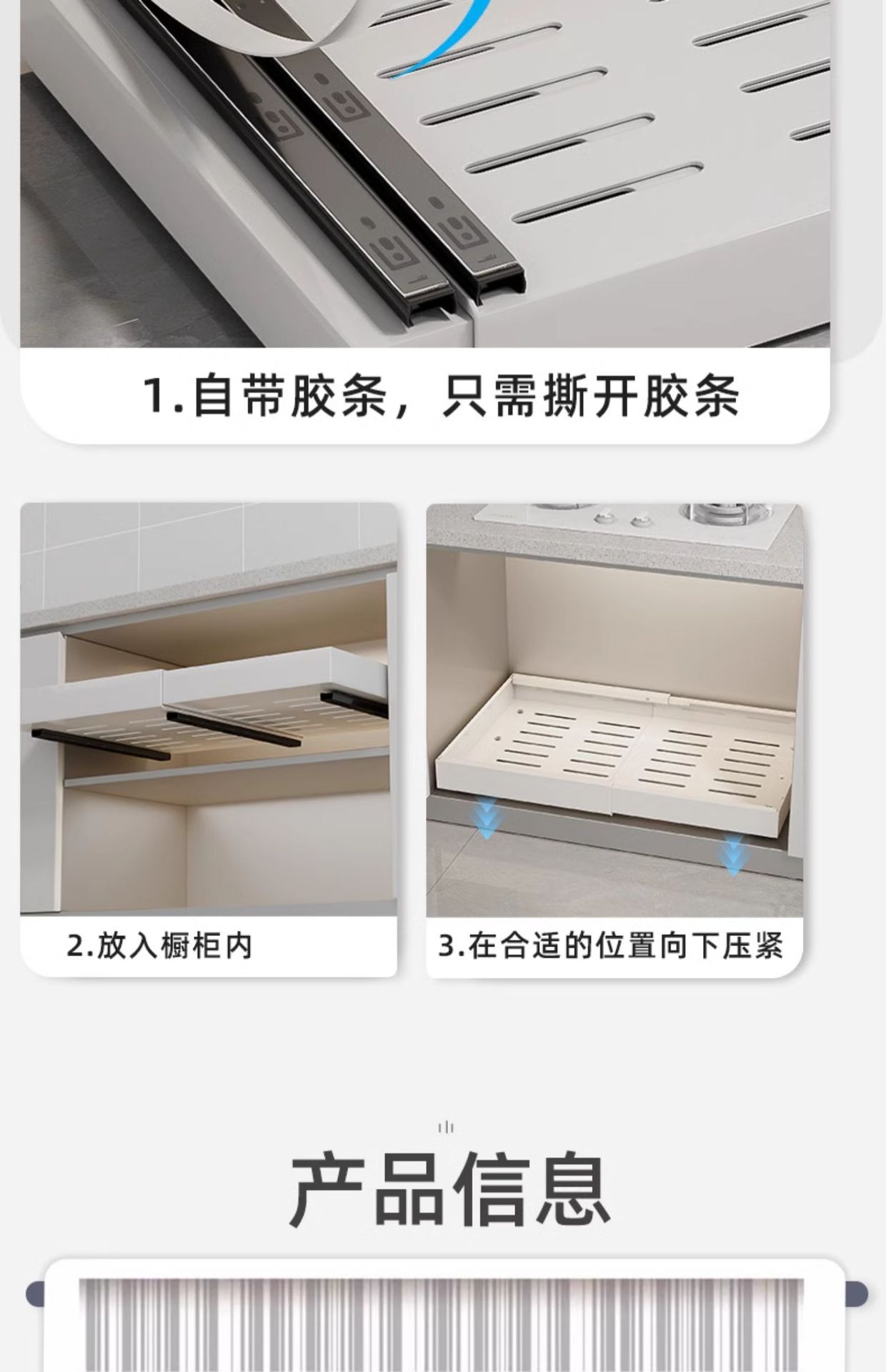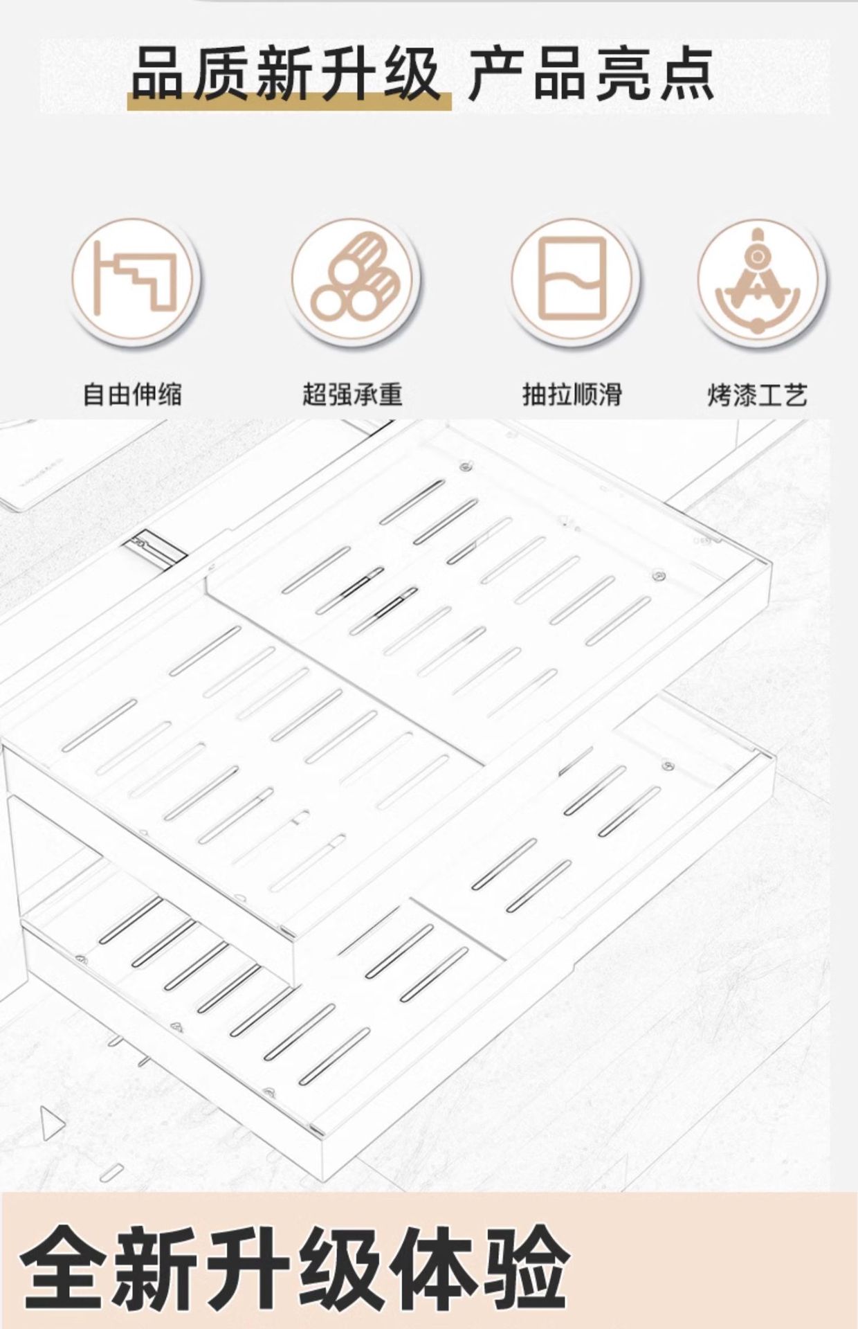 구멍이 없는 주방 캐비닛용 풀아웃 바구니, 접이식 수납 선반, 서랍형 슬라이드 레일, 싱크대 아래 풀아웃 수납 선반스토어 가기