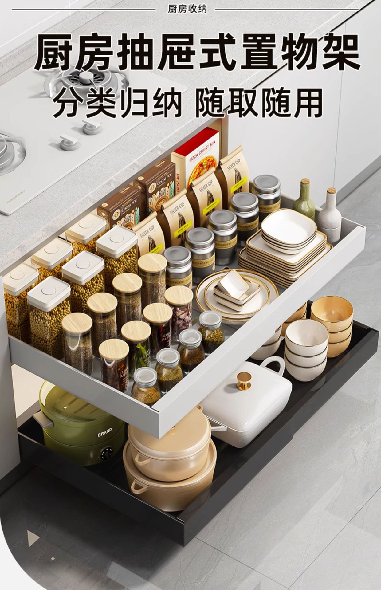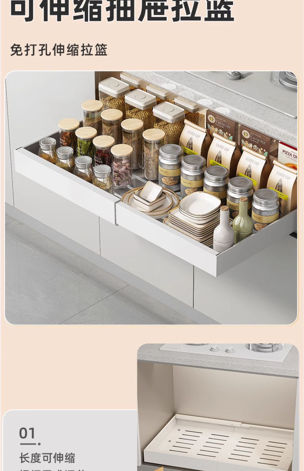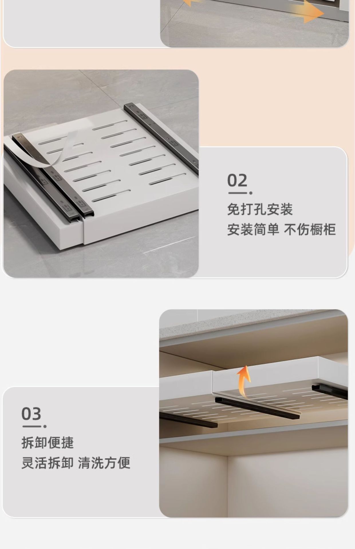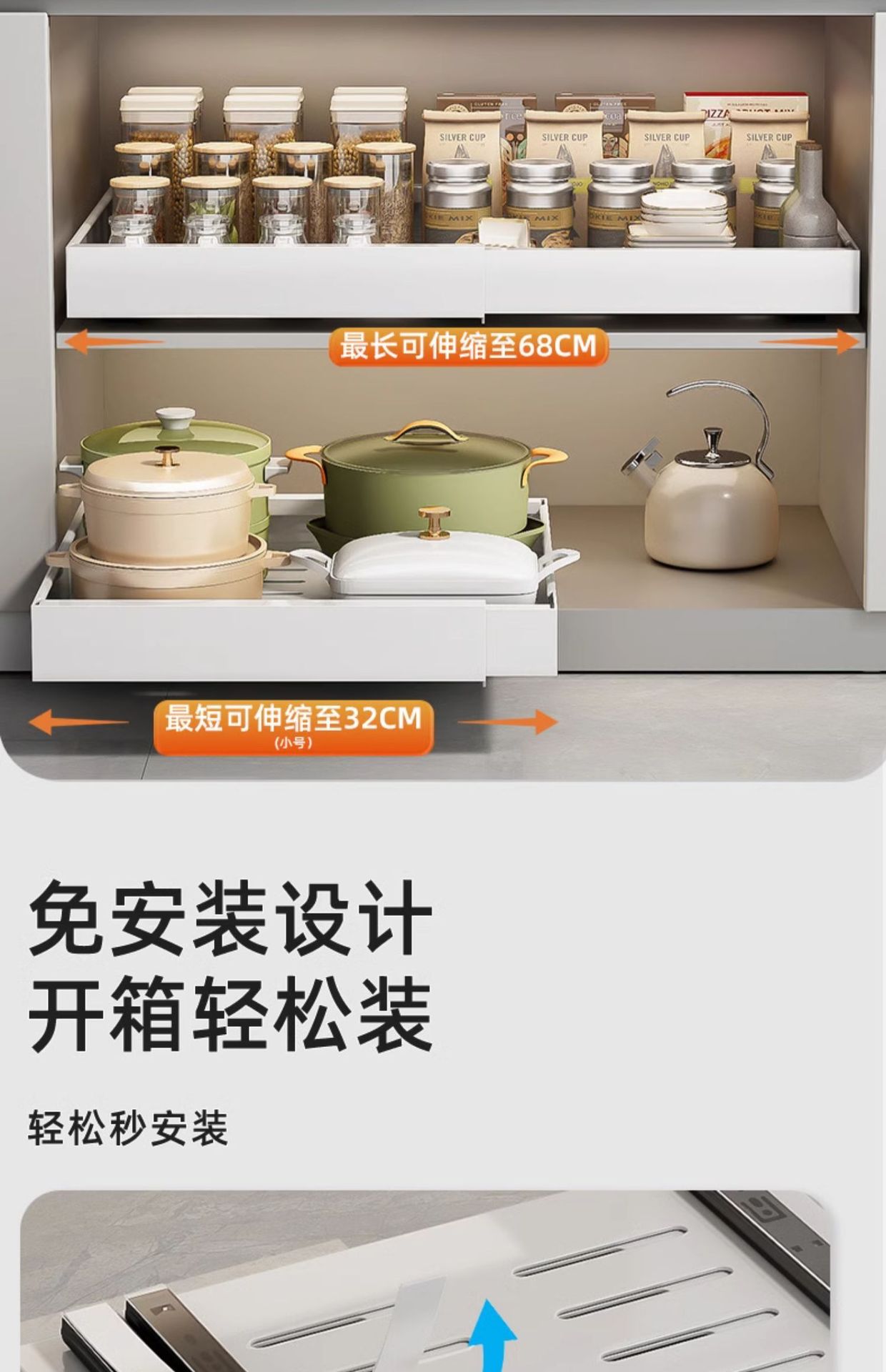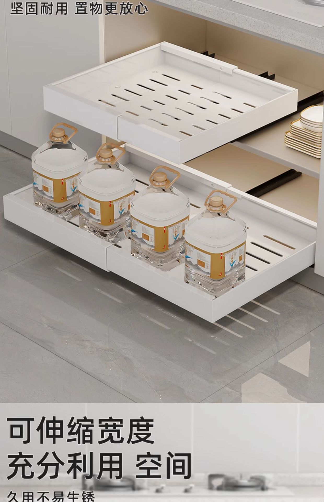 구멍이 없는 주방 캐비닛용 풀아웃 바구니, 접이식 수납 선반, 서랍형 슬라이드 레일, 싱크대 아래 풀아웃 수납 선반