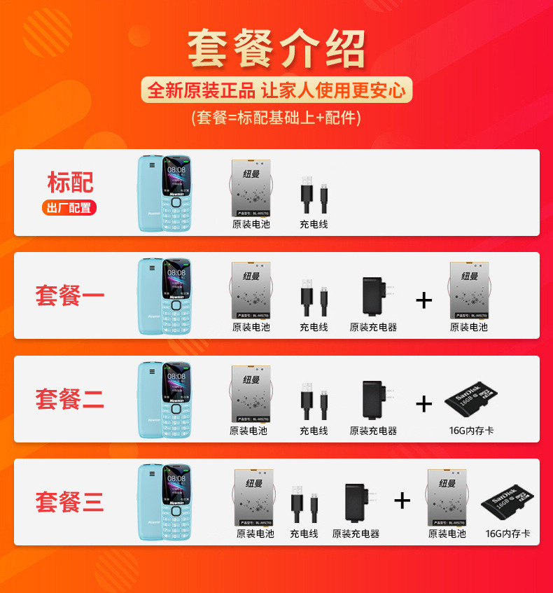• 레드-패키지 2(휴대폰+충전기+단일 배터리+16G 카드)-512MB