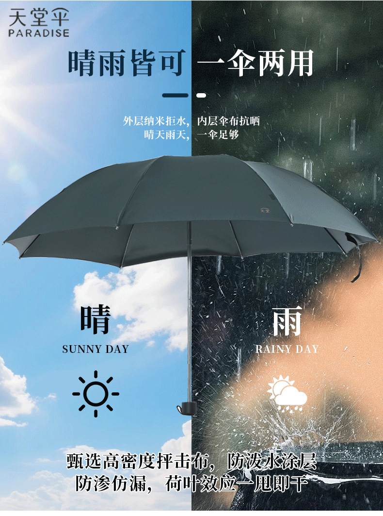 제조업체 비즈니스 간단한 비 또는 빛 천국 우산, 확대된 우산 표면, 8개의 뼈, 로고가 인쇄된 광고 우산
