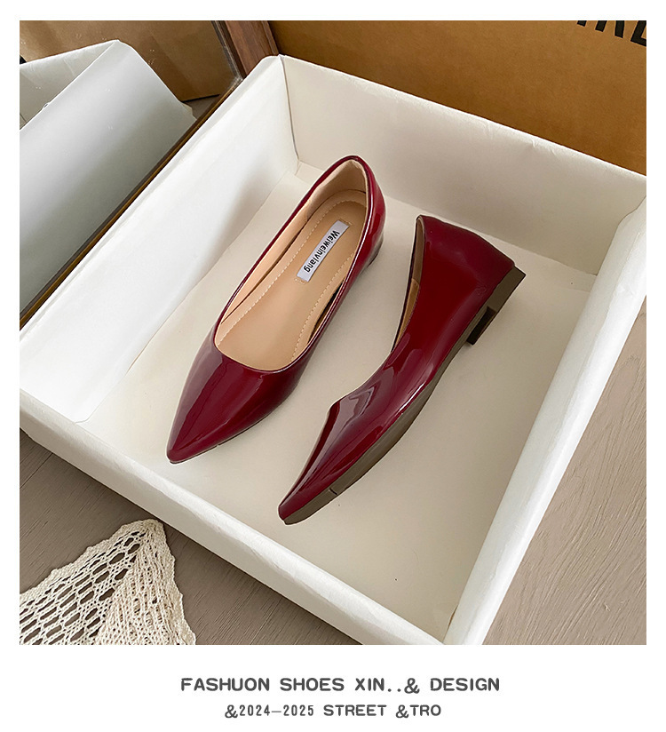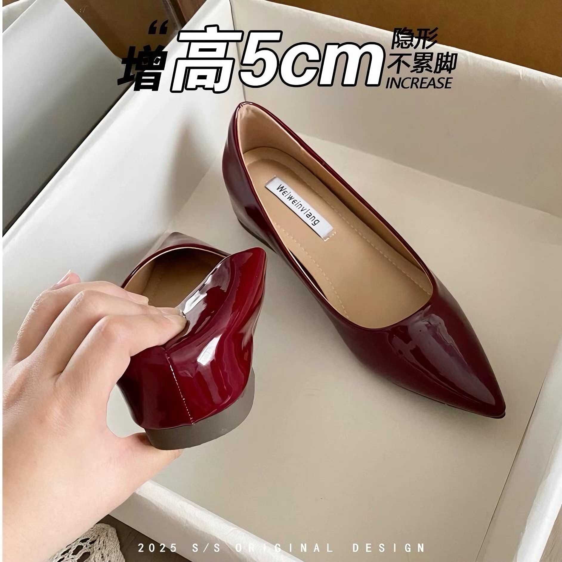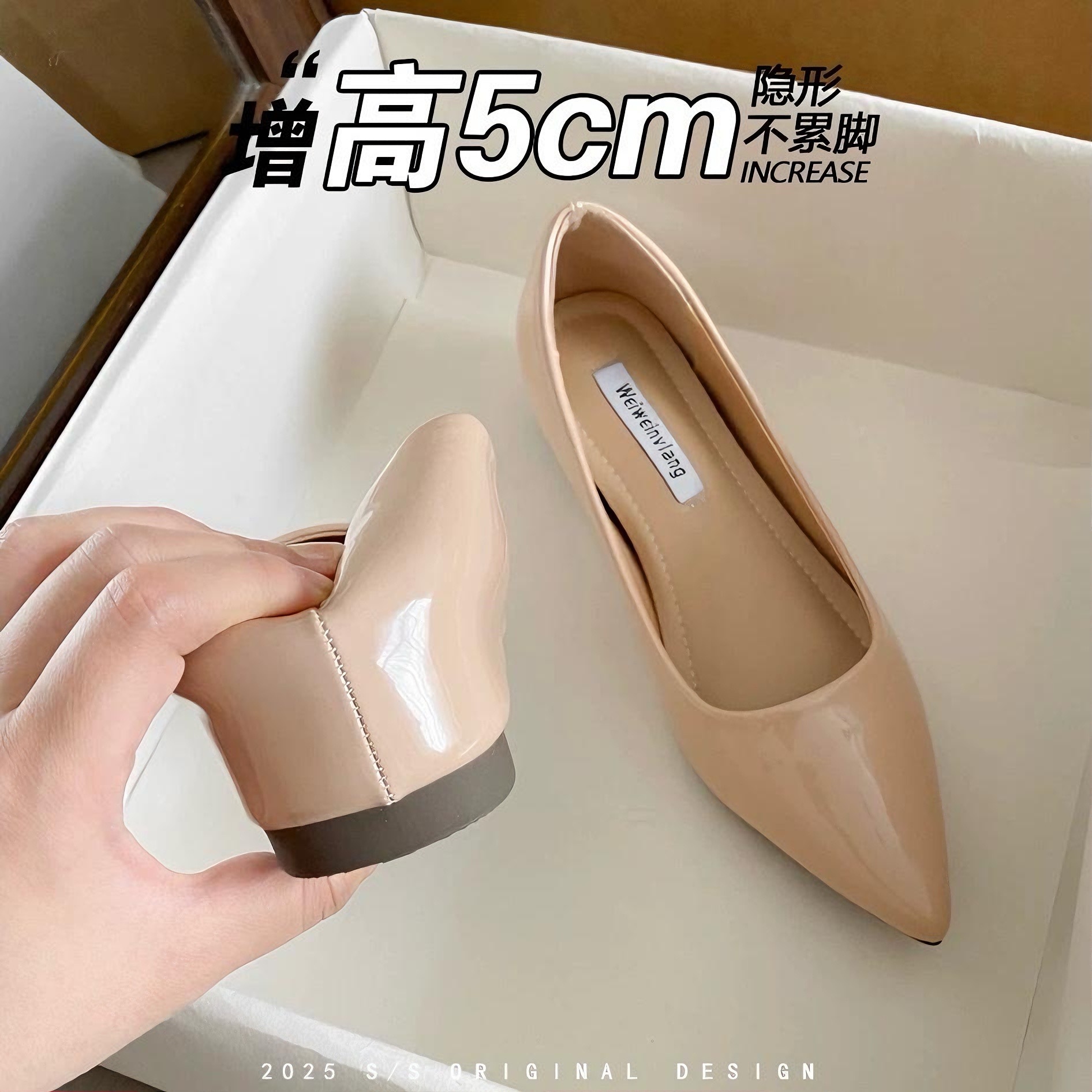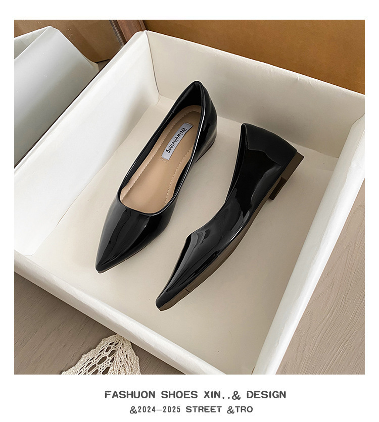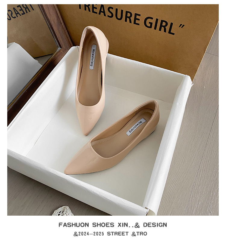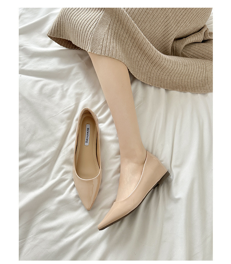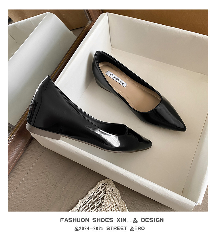 양가죽 버전 ~ 여성용 프렌치 플랫 슈즈 2025 봄 신상 내부 강화 기질 포인티드 토 웨지 힐 펌프스 슈즈스토어 가기