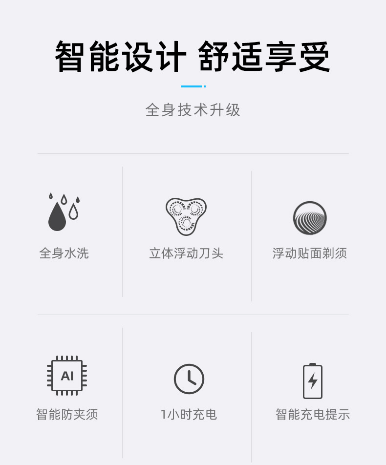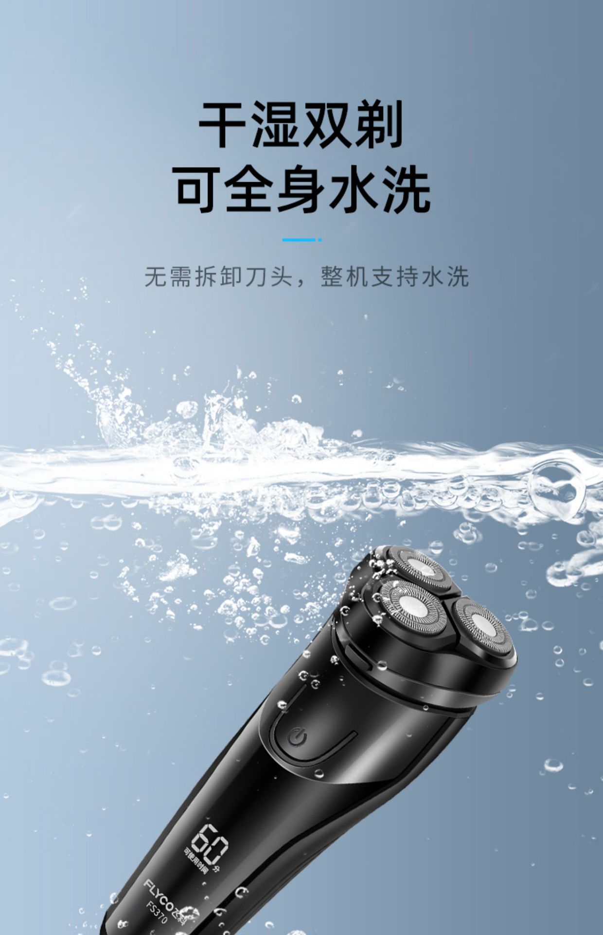 • Feike 스마트 전신 세척 FS923 블루 고속 충전 + 무료 보관 가방 + 스테인레스 스틸 블레이드 3개