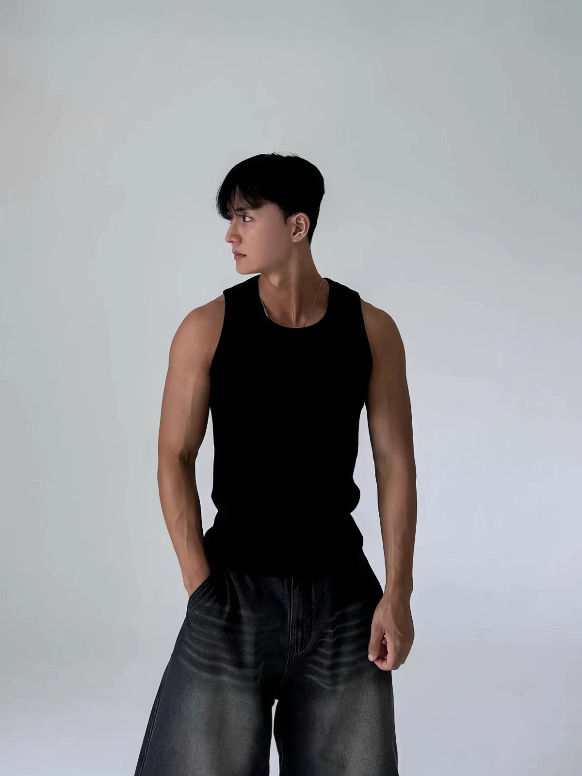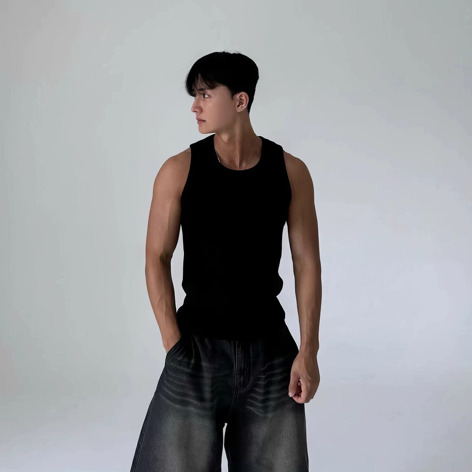 아메리칸 니트 그레이 피트니스 스웨트 조끼 남성용 스레드 스트레치 슬림핏 민소매 티셔츠 스포츠 트레이닝 베이스 레이어스토어 가기