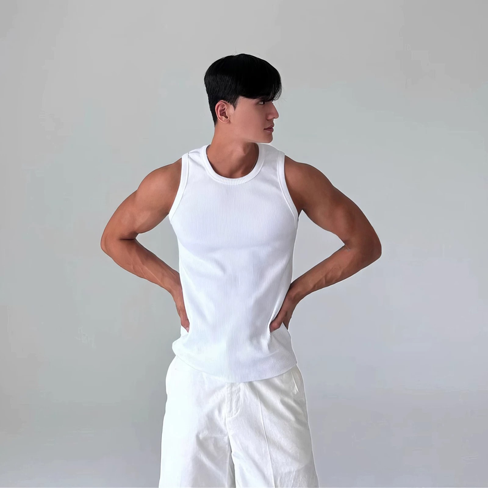 아메리칸 니트 그레이 피트니스 스웨트 조끼 남성용 스레드 스트레치 슬림핏 민소매 티셔츠 스포츠 트레이닝 베이스 레이어