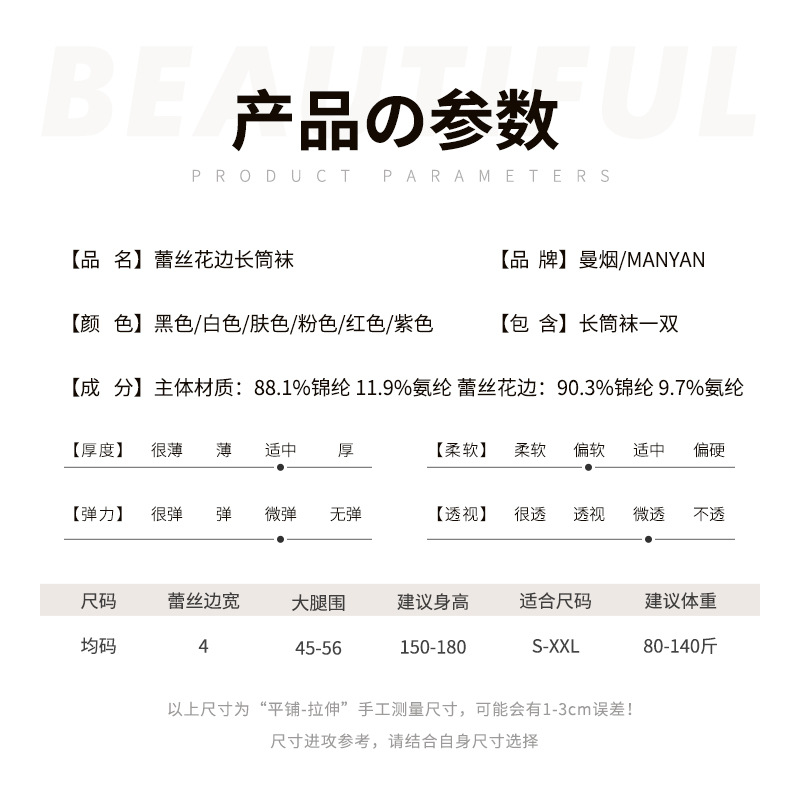 Manyan 섹시한 속옷 레이스 스타킹 섹시한 부드러운 거즈 시스루 무릎 양말 검은 실크 섹시한 스타킹 7004