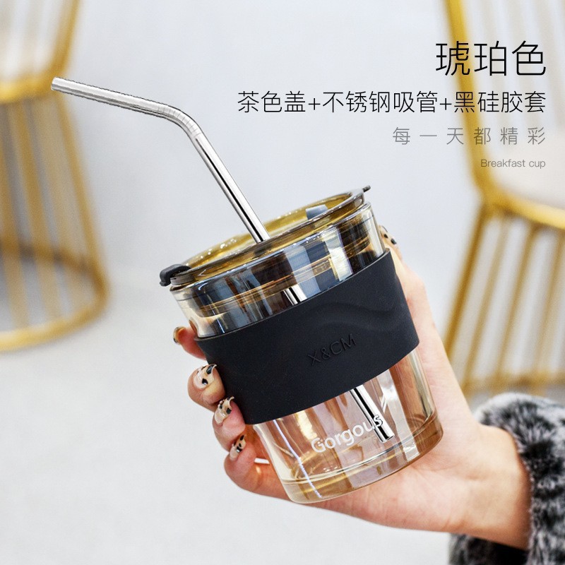 • 짧은 호박색 + 호박색 뚜껑 + 스테인레스 스틸 빨대 + 실리콘 커버