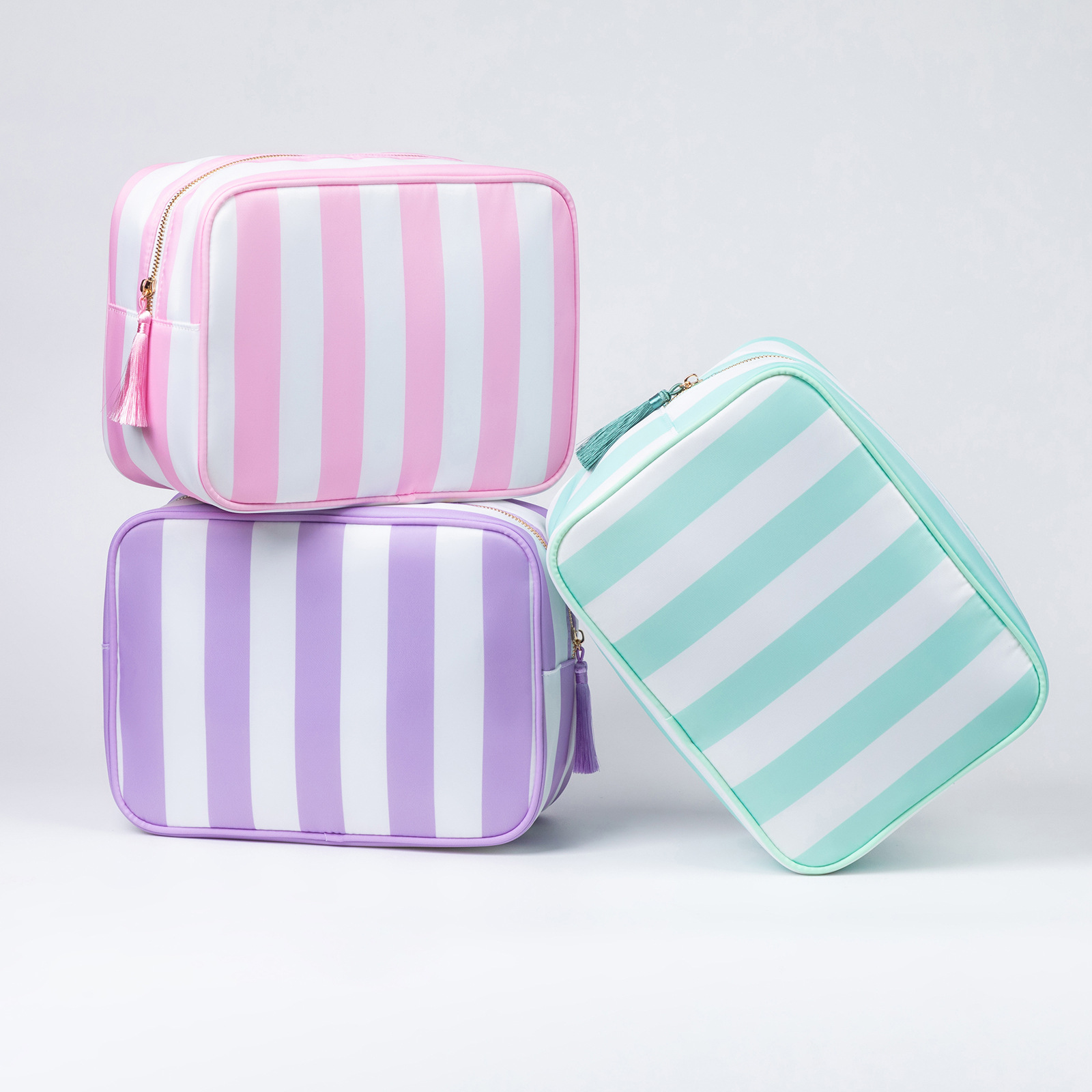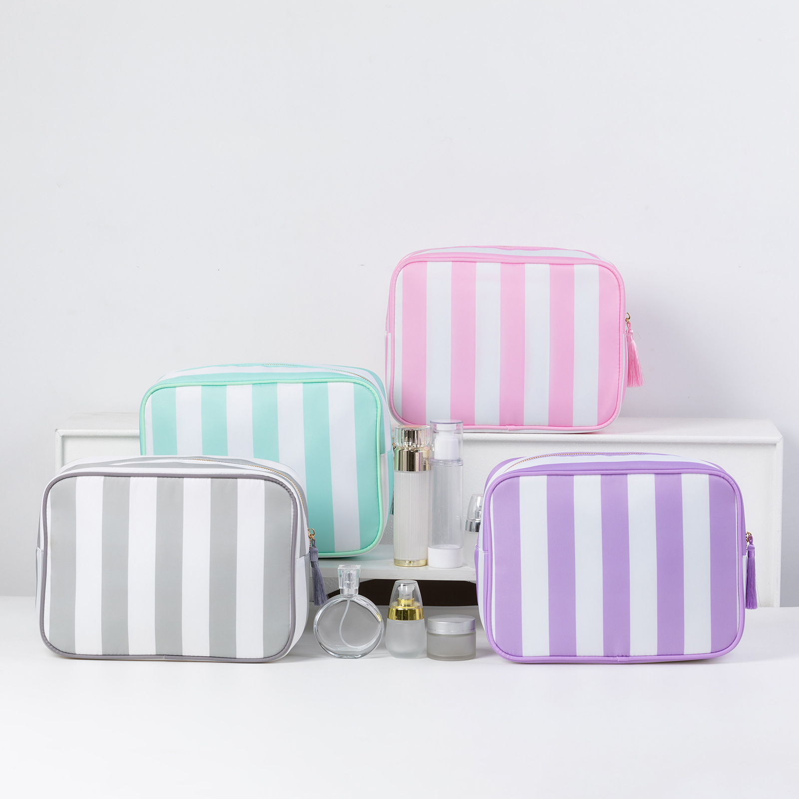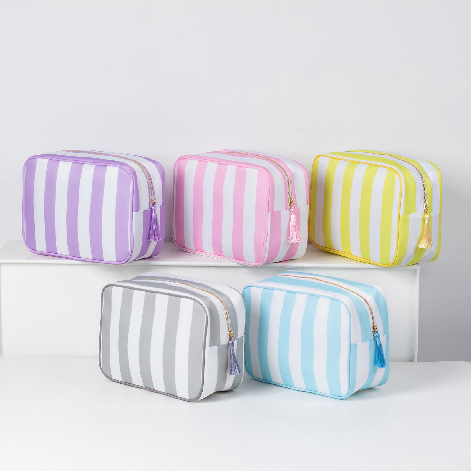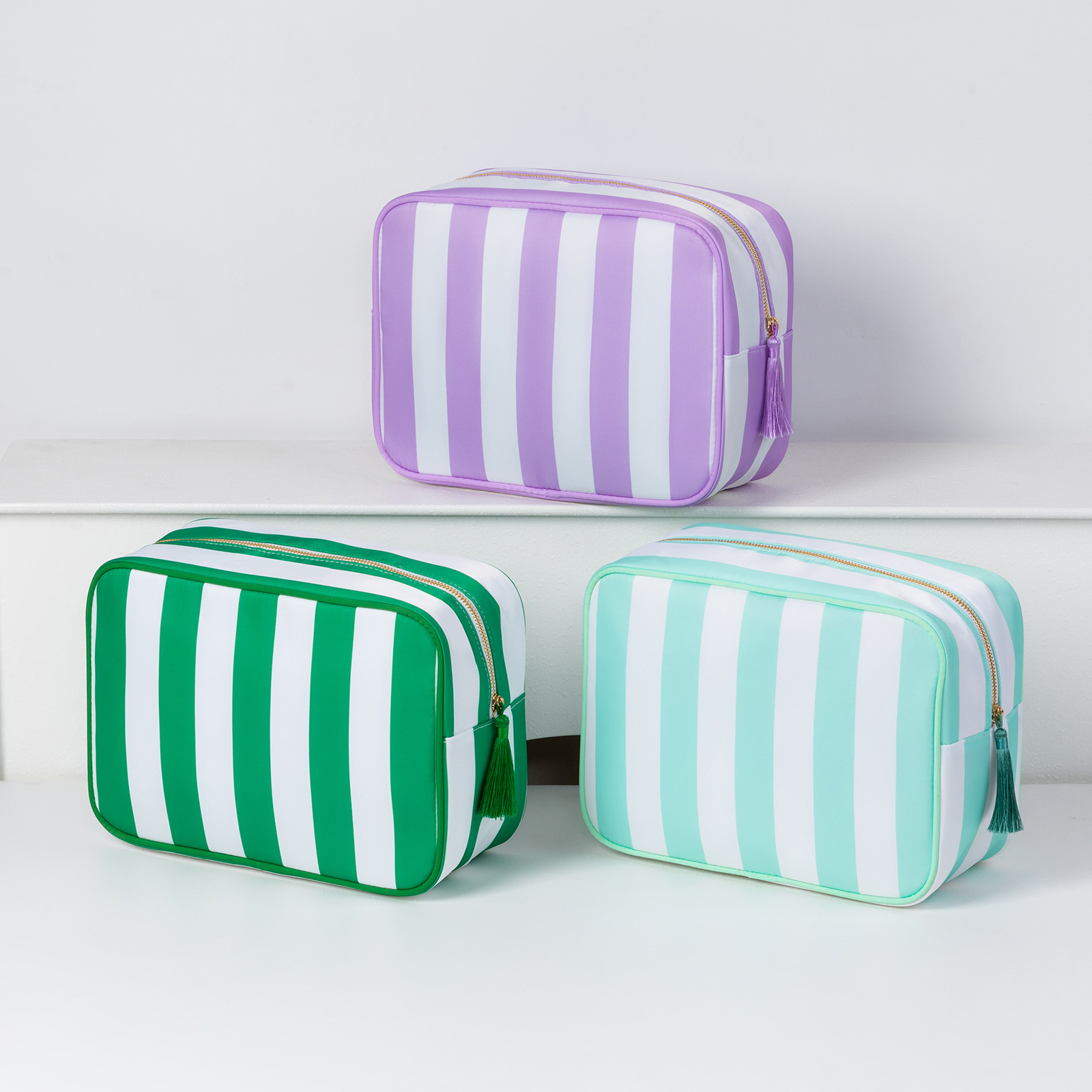 국경 간 여성 화장품 가방 스트라이프 휴대용 지퍼 워시 가방 방수 및 환경 친화적 인 나일론 여행용 수납 가방 도매