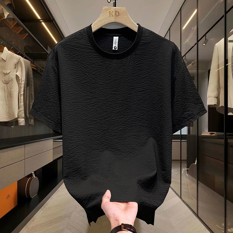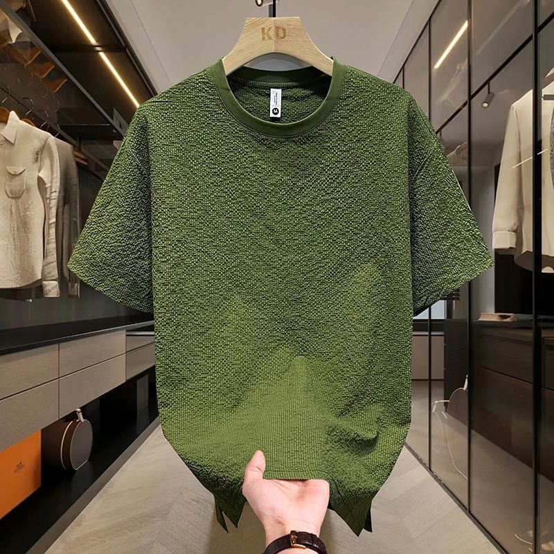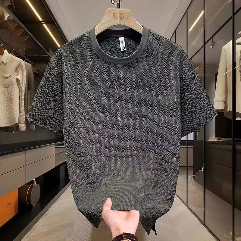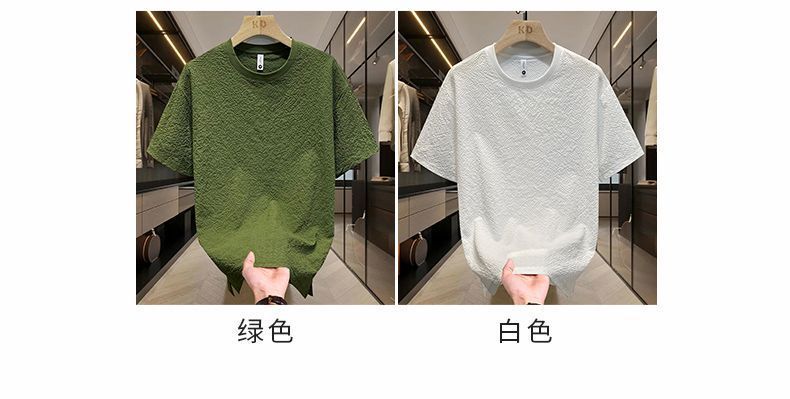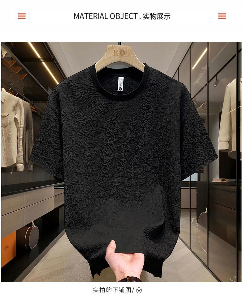 여름 시어서커 고급 질감 라운드 넥 반팔 티셔츠 남성용 얇은 슬림 탑 패셔너블 반팔 티셔츠
