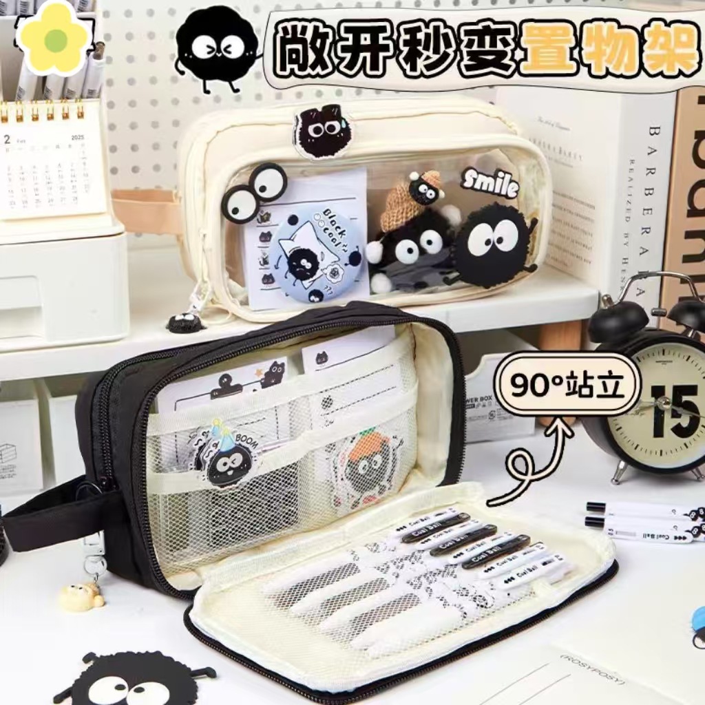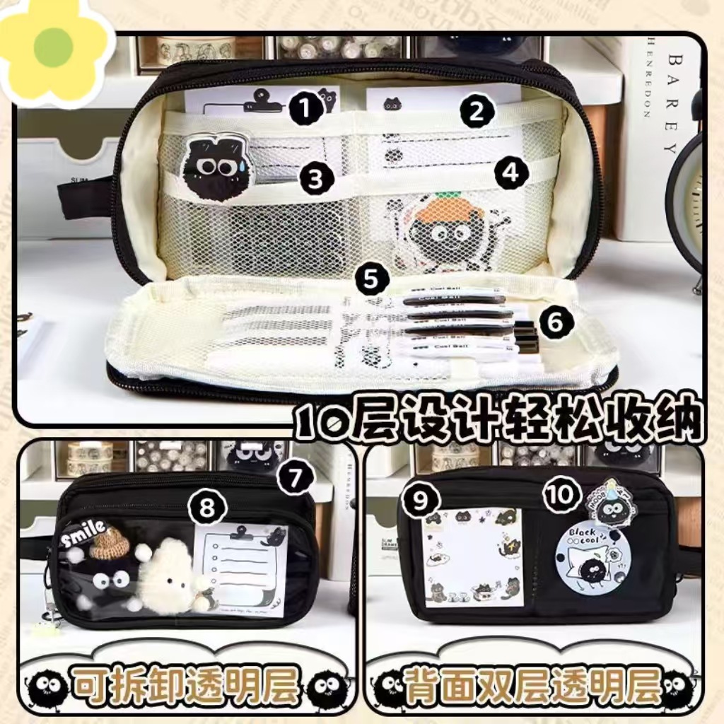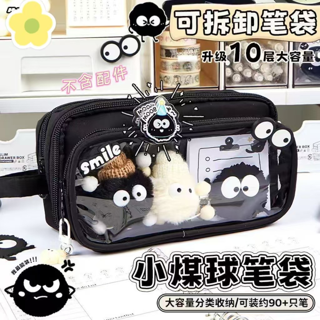 작은 석탄볼 모양의 10단 분리형 투명 고급스러운 인스타 스타일 문구함, 다층 대용량 수납 필통