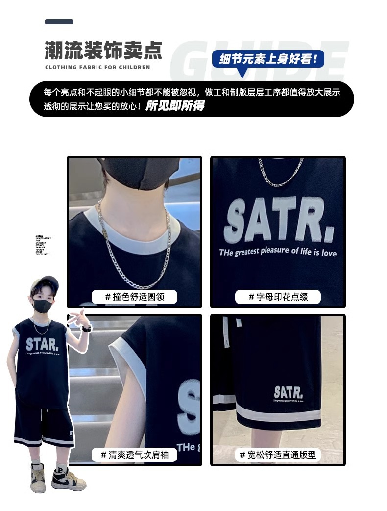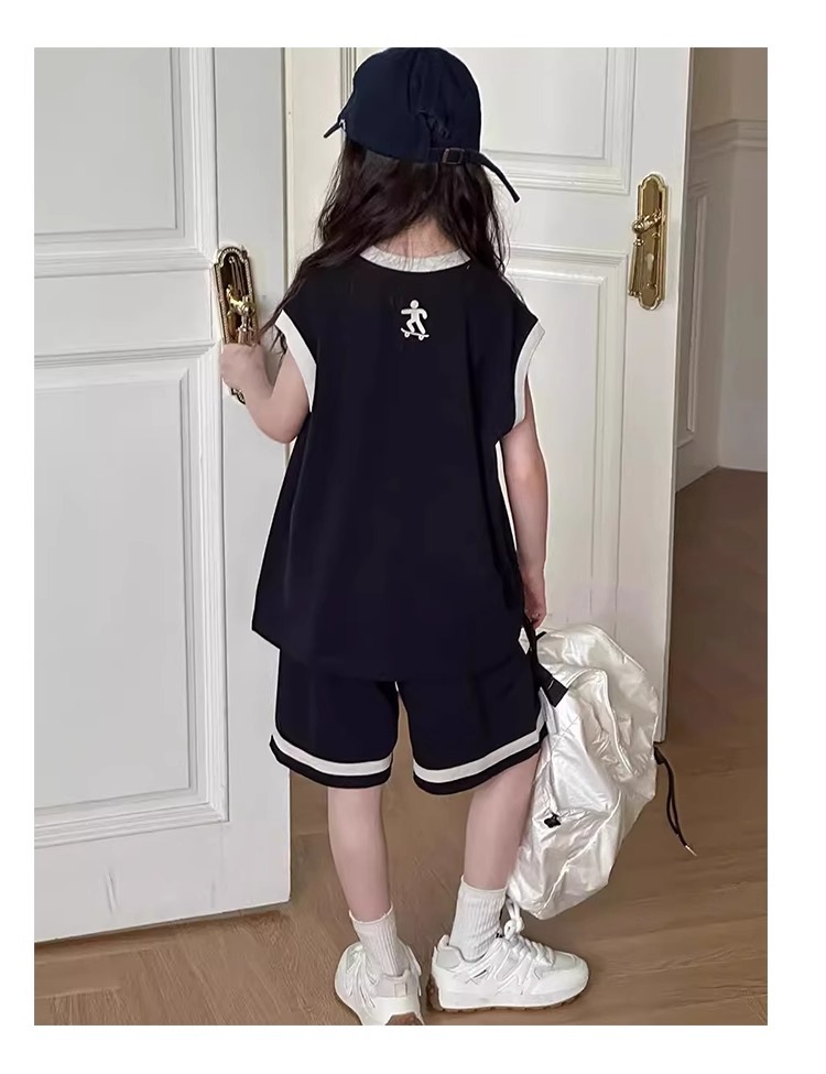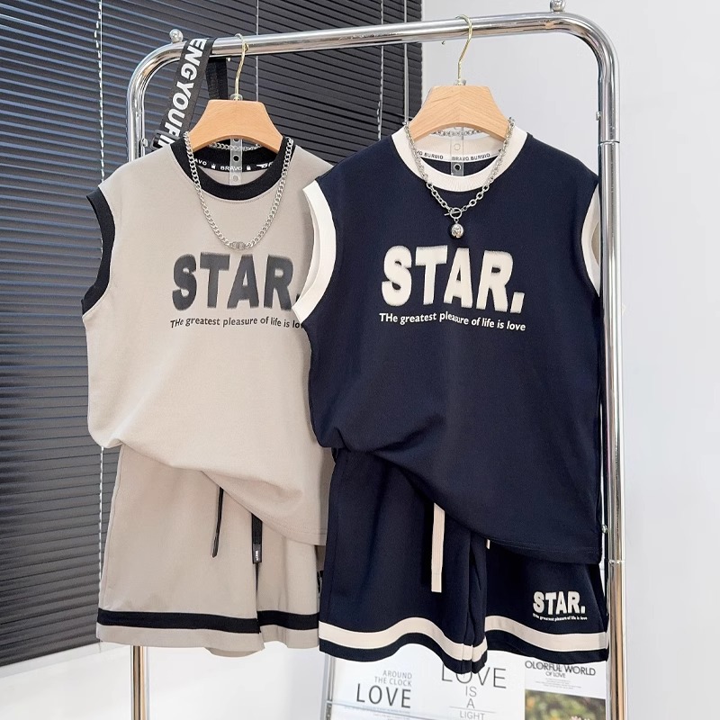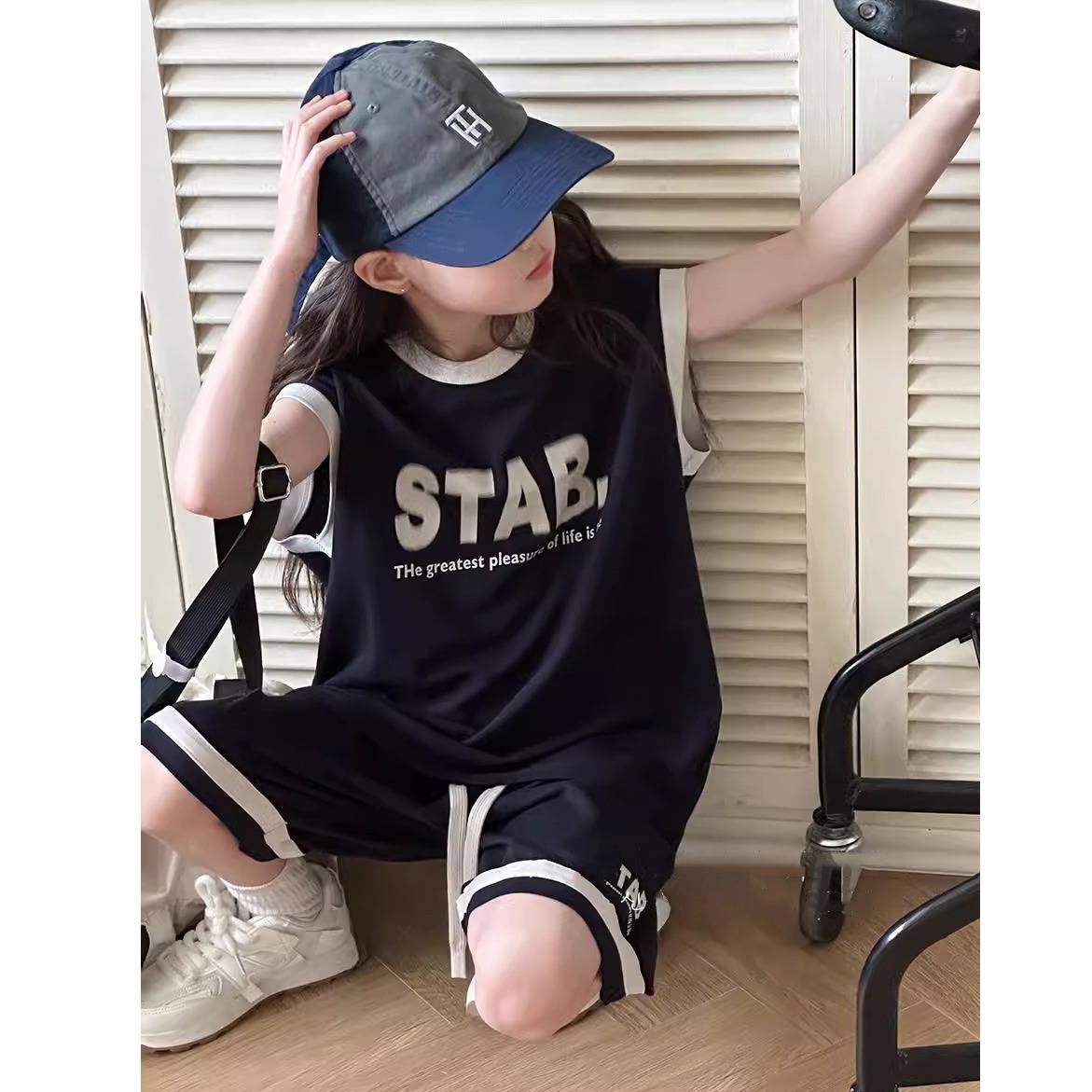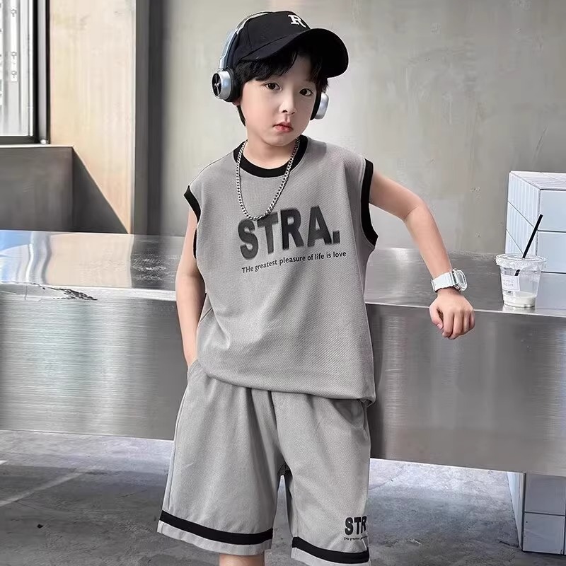 여아 운동복, 여름 아동 스타일 조끼, 캐주얼 반바지, 중대형 아동용 투피스 세트, 트렌디한 남아 농구복스토어 가기