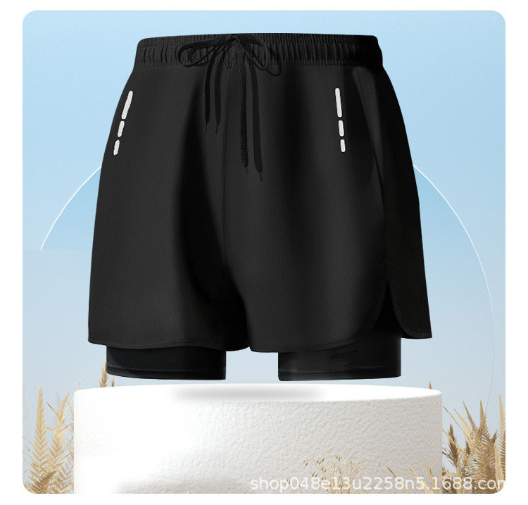 스포츠 더블 레이어 수영 트렁크 느슨한 플러스 사이즈 플랫 앵글 포켓 안티 당황하지 않는 피트니스 남자 수영 트렁크스토어 가기