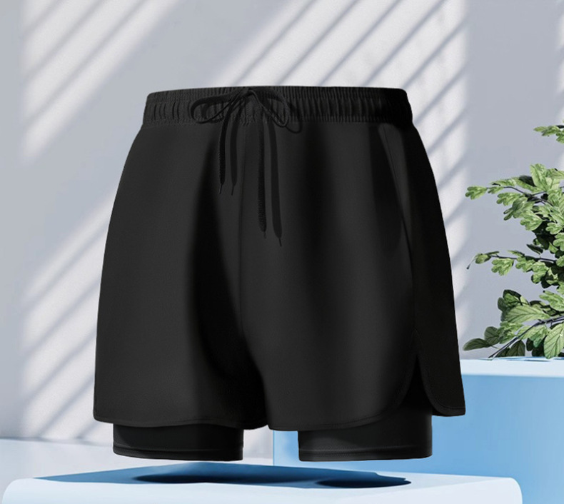 스포츠 더블 레이어 수영 트렁크 느슨한 플러스 사이즈 플랫 앵글 포켓 안티 당황하지 않는 피트니스 남자 수영 트렁크