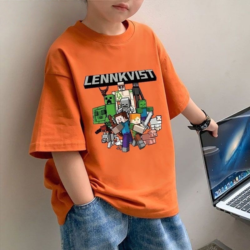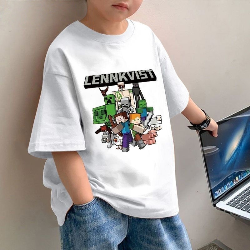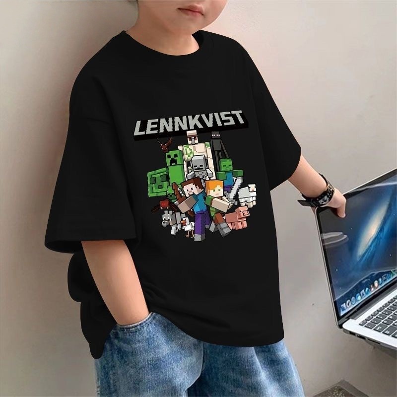 소년의 새로운 순면 반팔 티셔츠 여름 어린이 마인 크래프트 컬렉션 프린트 루즈한 중대형 아동용 탑 트렌디 t스토어 가기