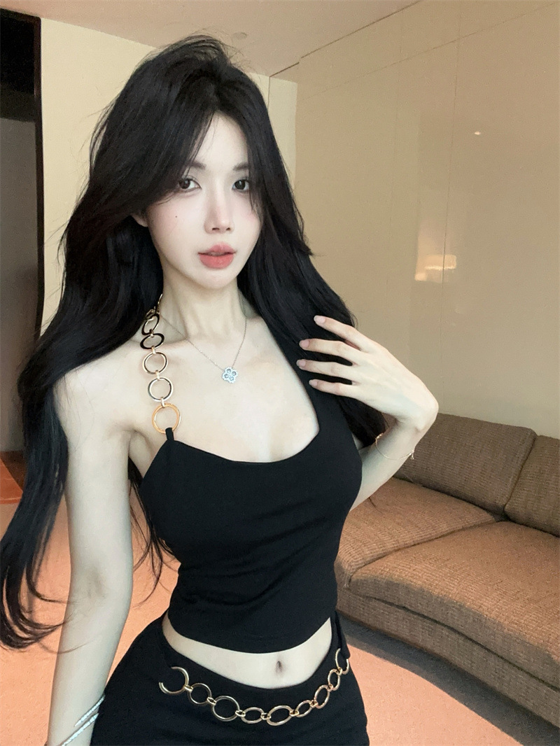 아메리칸 시크 메탈 링 비대칭 캐미솔 섹시한 백리스 슬리밍 힙 스커트 여성용 여름 슈트스토어 가기