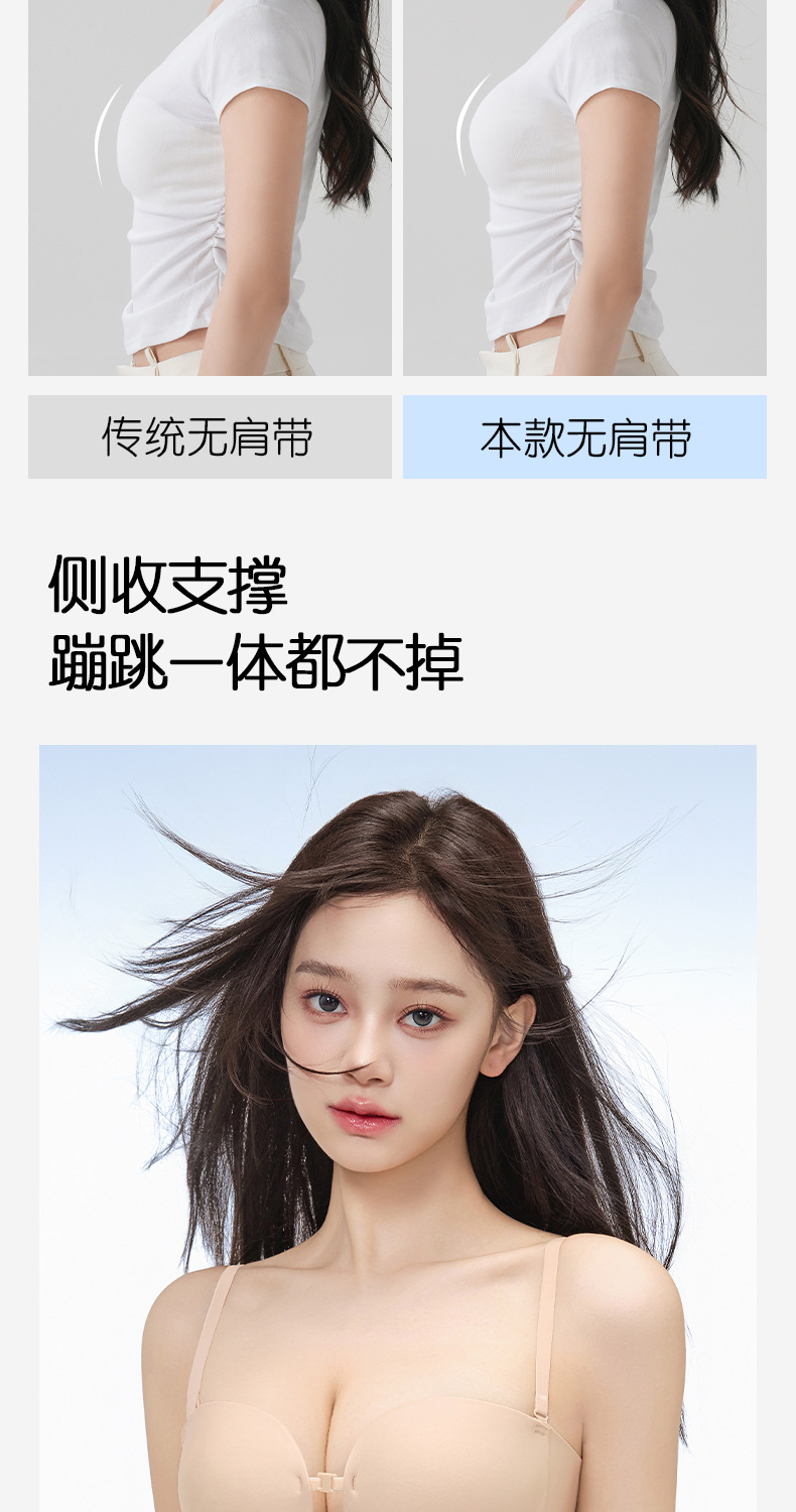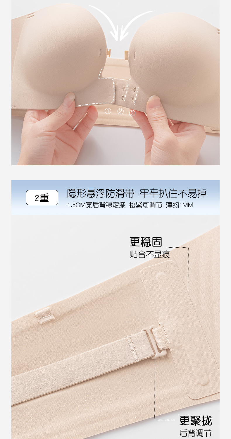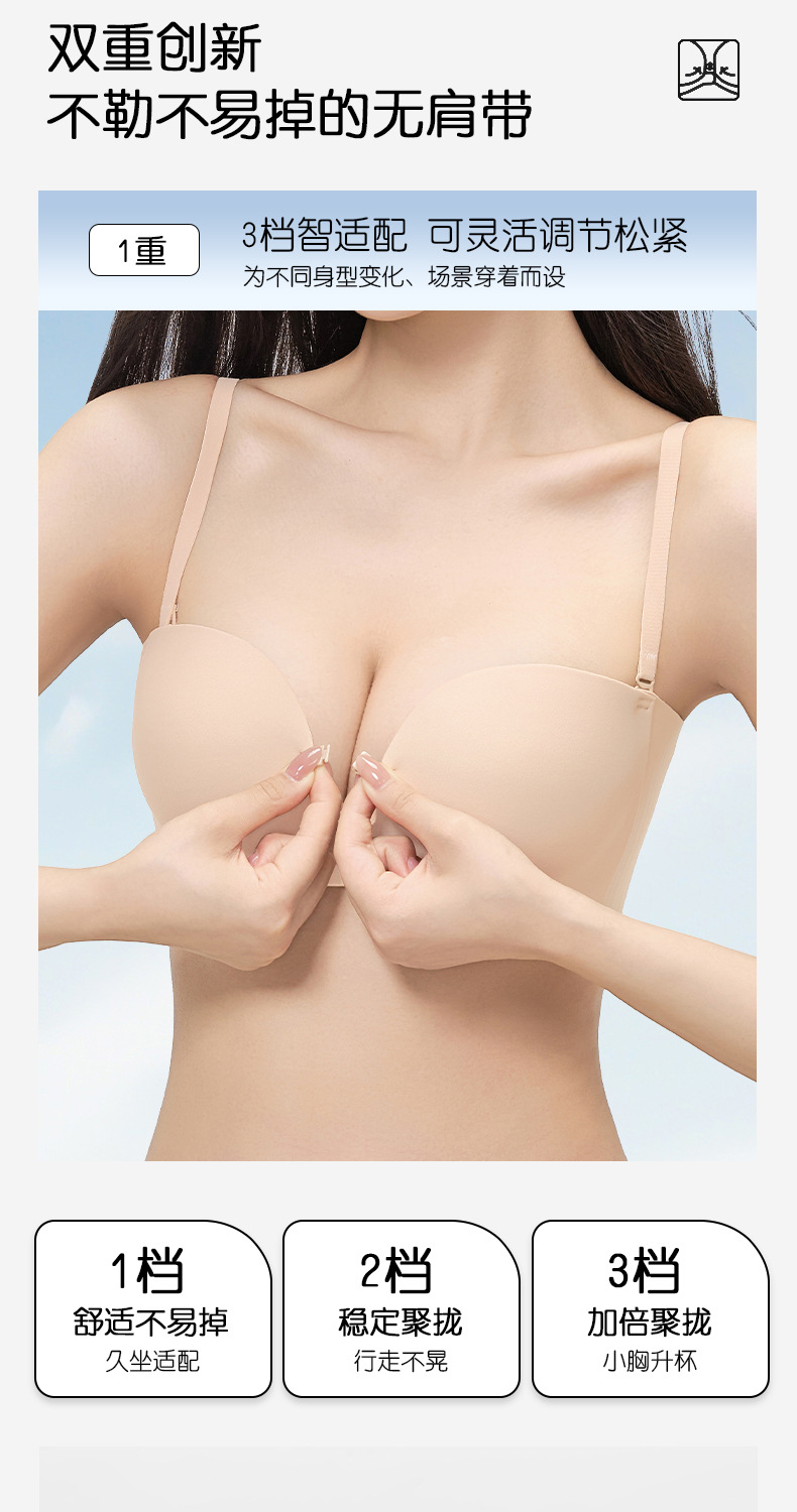 千层提拉软支撑无痕美背内衣女调整型聚拢侧收防走光无钢圈文胸夏 圆圆杯漫画胸无肩带内衣女防滑不掉小胸专用聚拢固定半杯无痕文胸