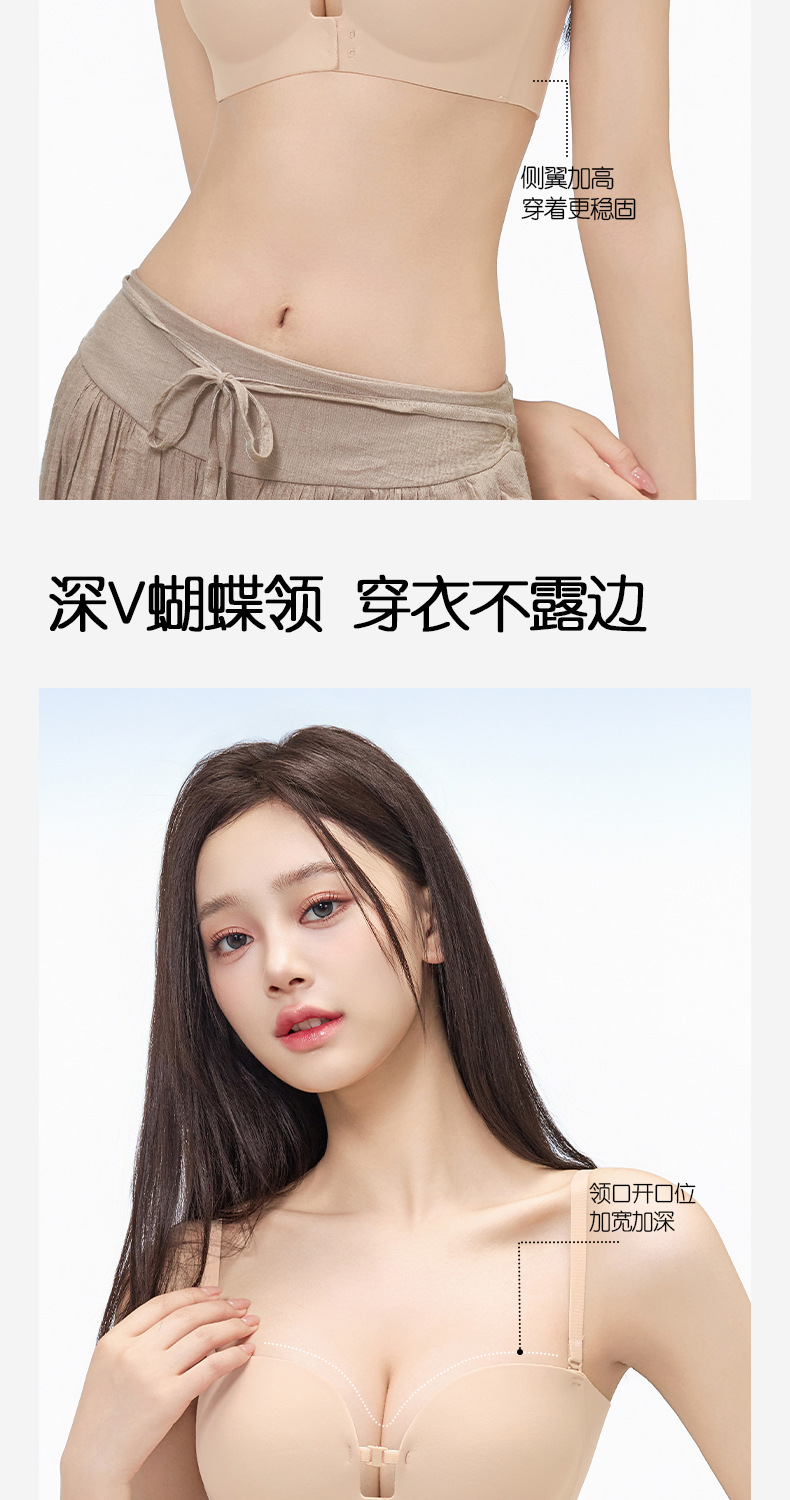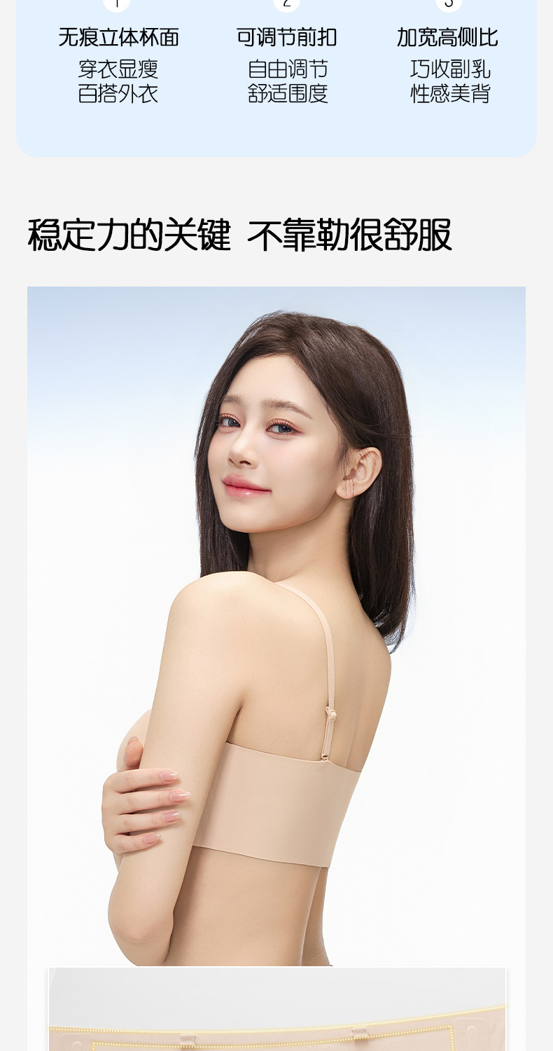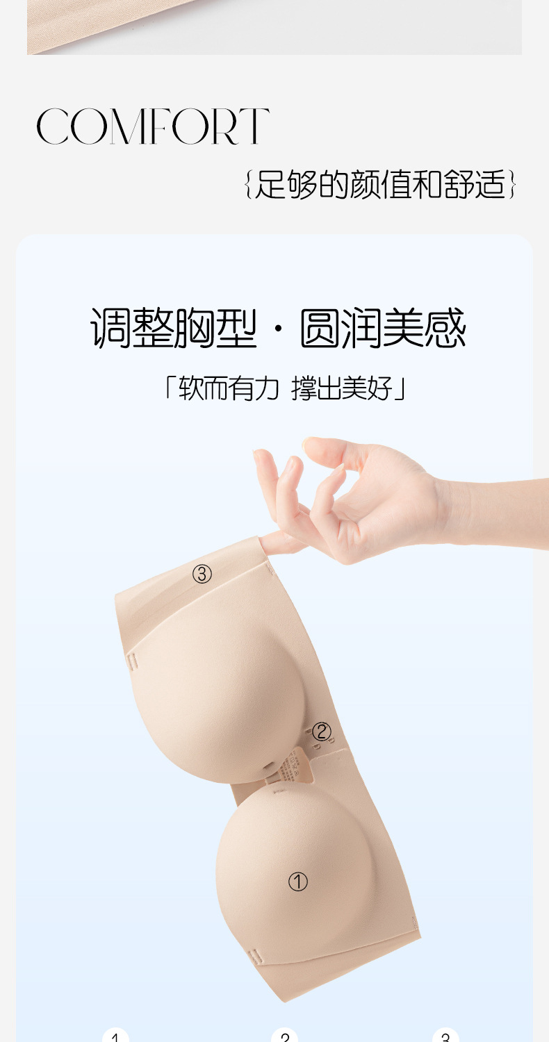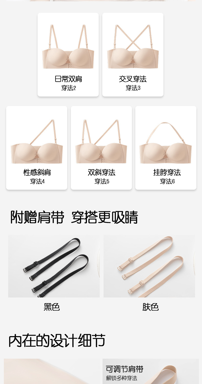 千层提拉软支撑无痕美背内衣女调整型聚拢侧收防走光无钢圈文胸夏 圆圆杯漫画胸无肩带内衣女防滑不掉小胸专用聚拢固定半杯无痕文胸