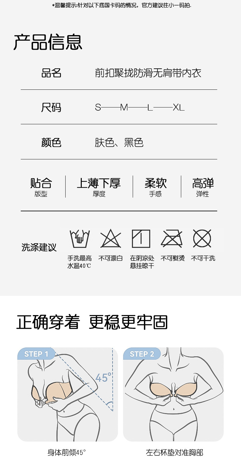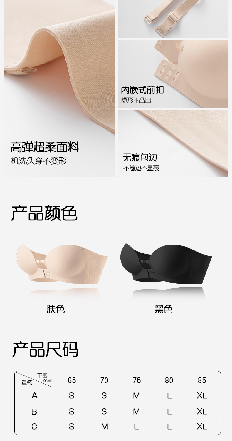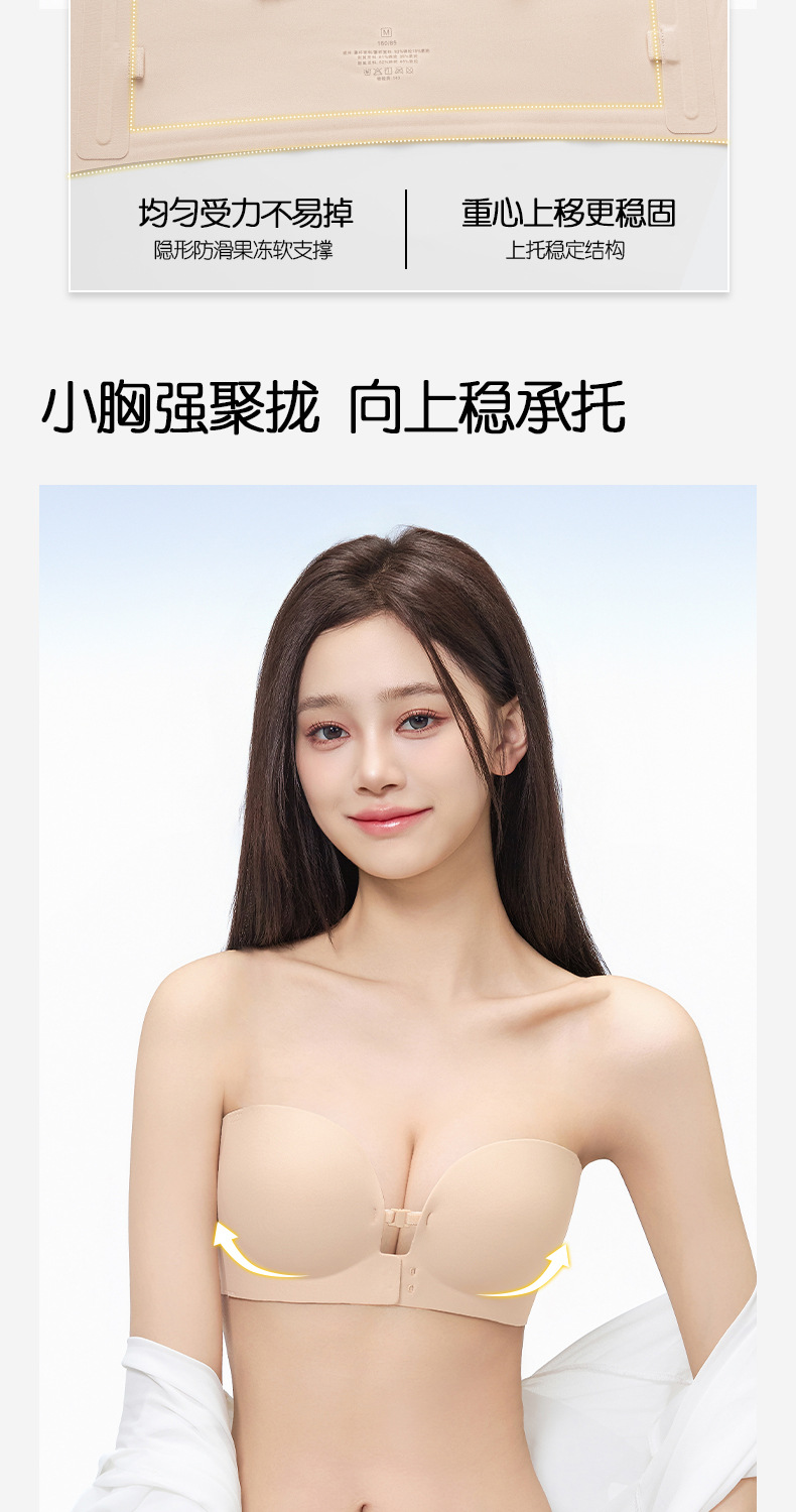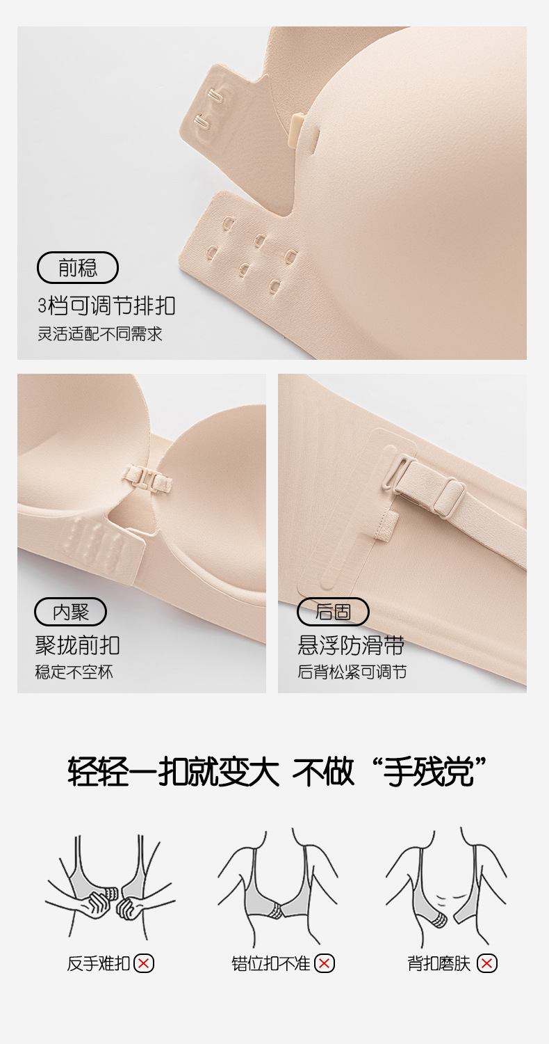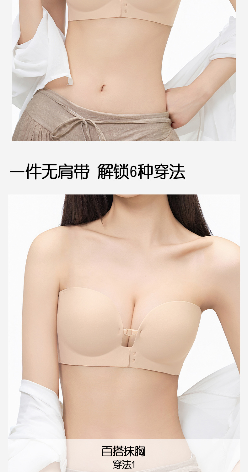 幸棉前扣无肩带小胸聚拢抹胸结婚纱隐形裹胸粉底液文胸防滑内衣女