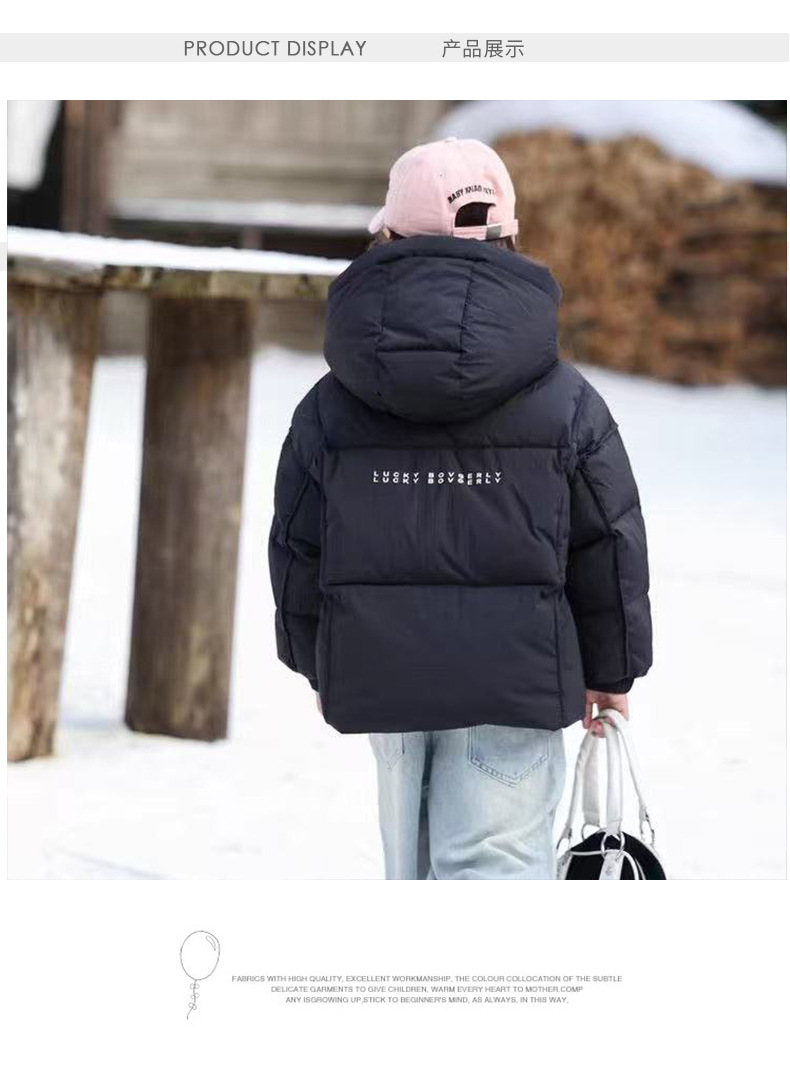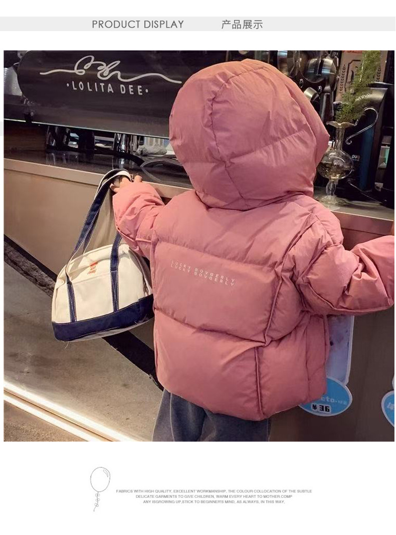 겨울 신작 아동용 후드 다운 재킷, 따뜻하고 귀여운 겨울 아동복, 중소형 아동용 두꺼운 면 코트, 트렌디