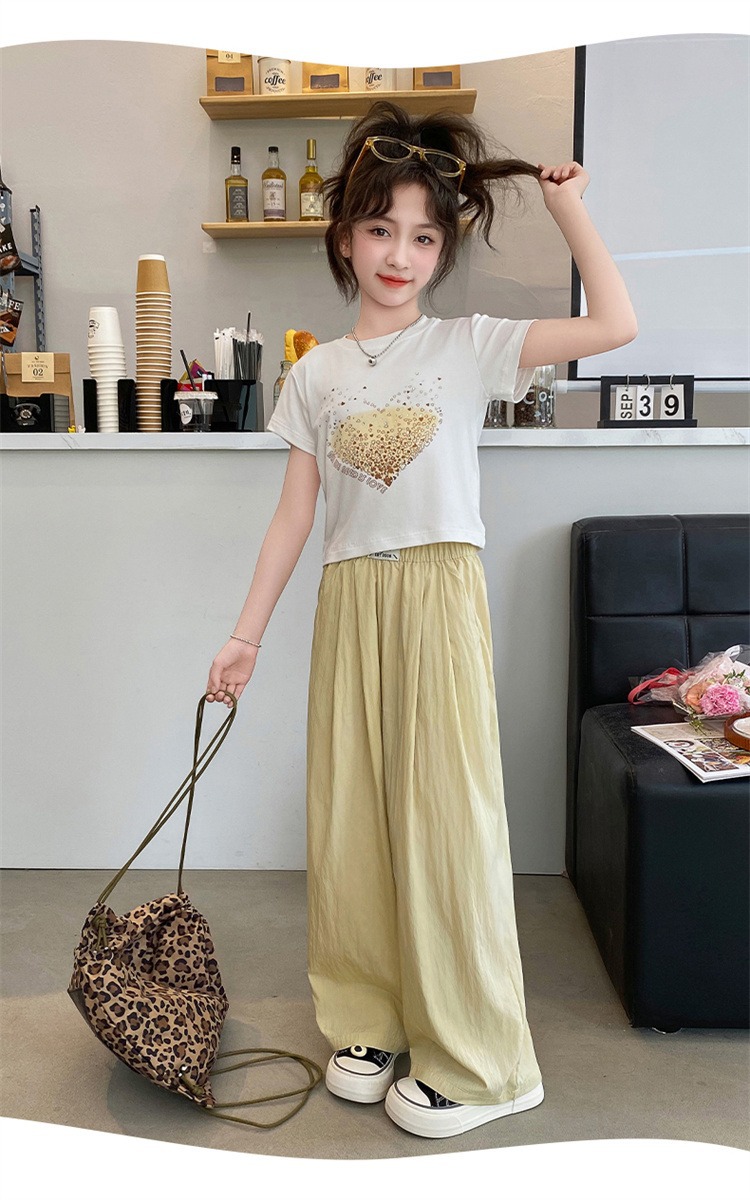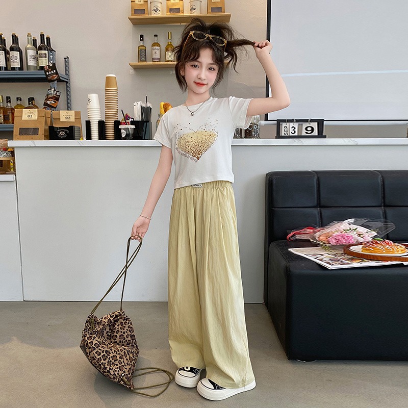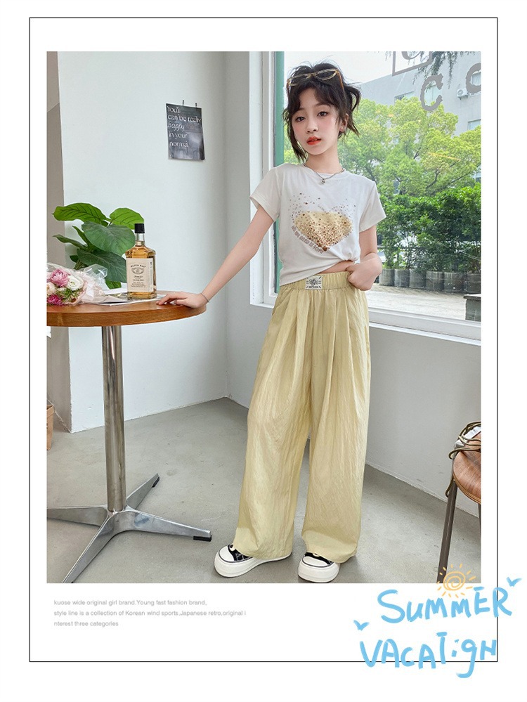 여아용 와이드 팬츠, 여름용 얇은 아동용 여름 아이스 실크 팬츠, 큰 아동용 야마모토 팬츠, 여아용 여름 모기 방지 바지스토어 가기
