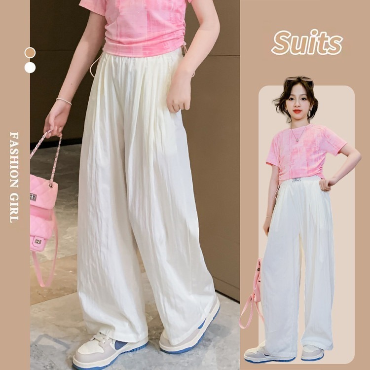 여아용 와이드 팬츠, 여름용 얇은 아동용 여름 아이스 실크 팬츠, 큰 아동용 야마모토 팬츠, 여아용 여름 모기 방지 바지