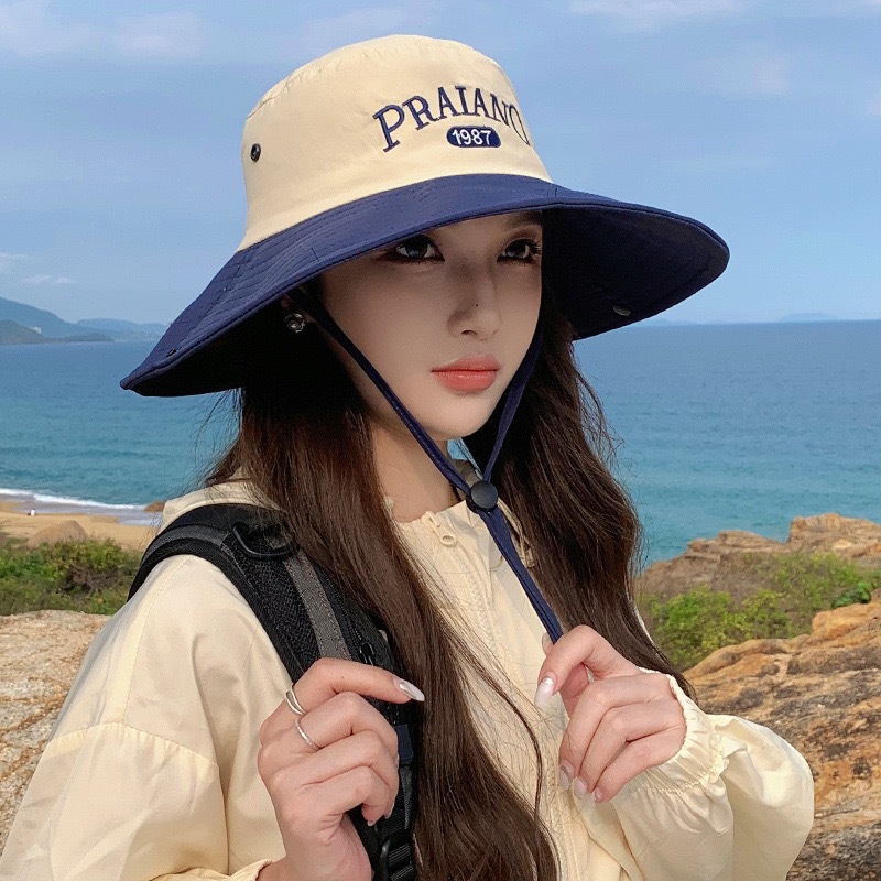 아메리칸 카우보이 모자 여성용 자외선 차단 모자 레트로 일본 어부 모자 남성용 챙이 큰 하이킹 및 캠핑용 태양 모자