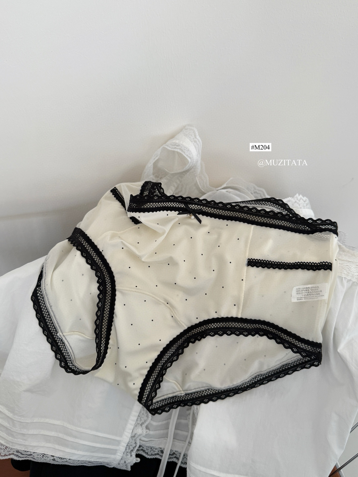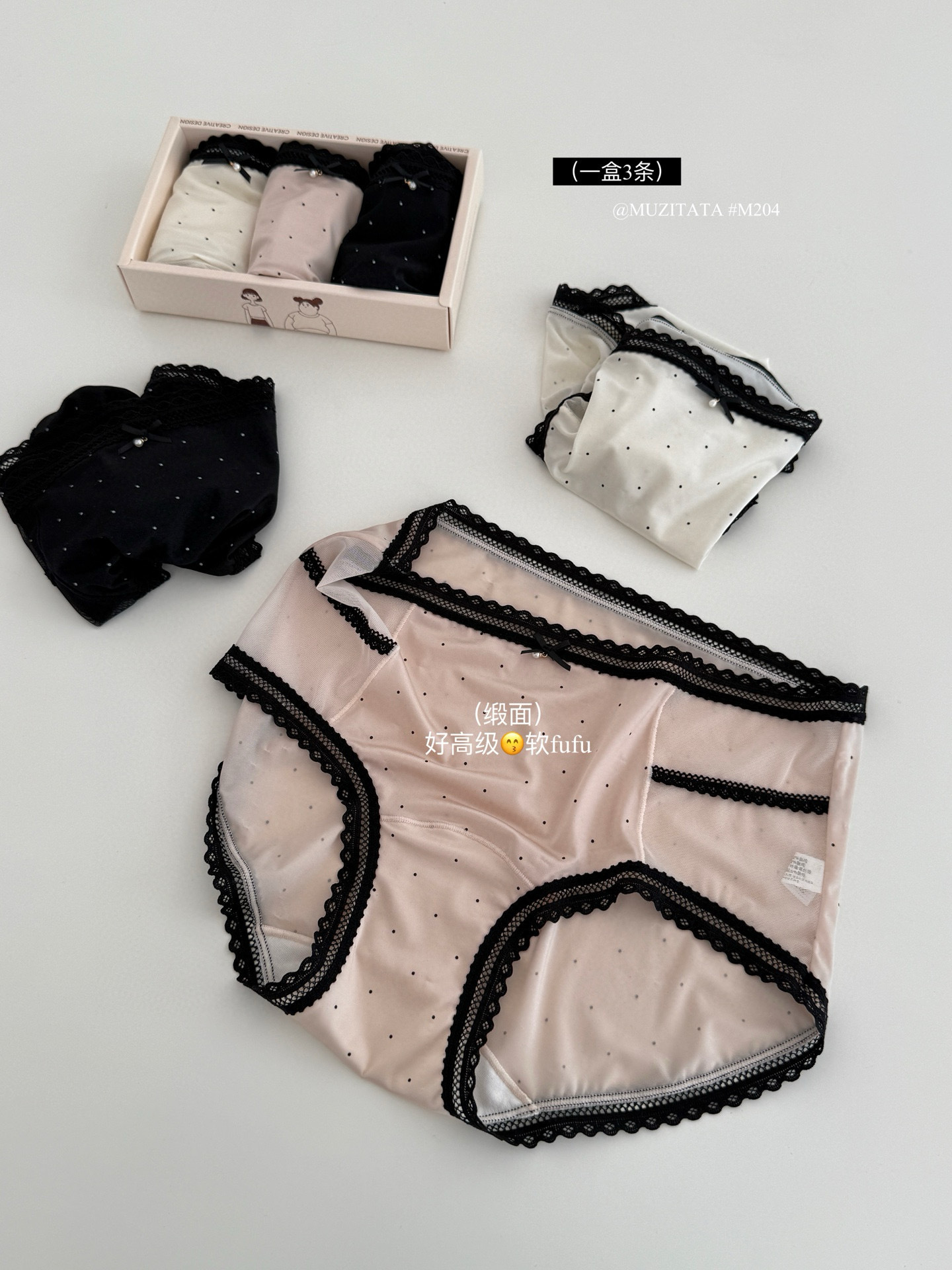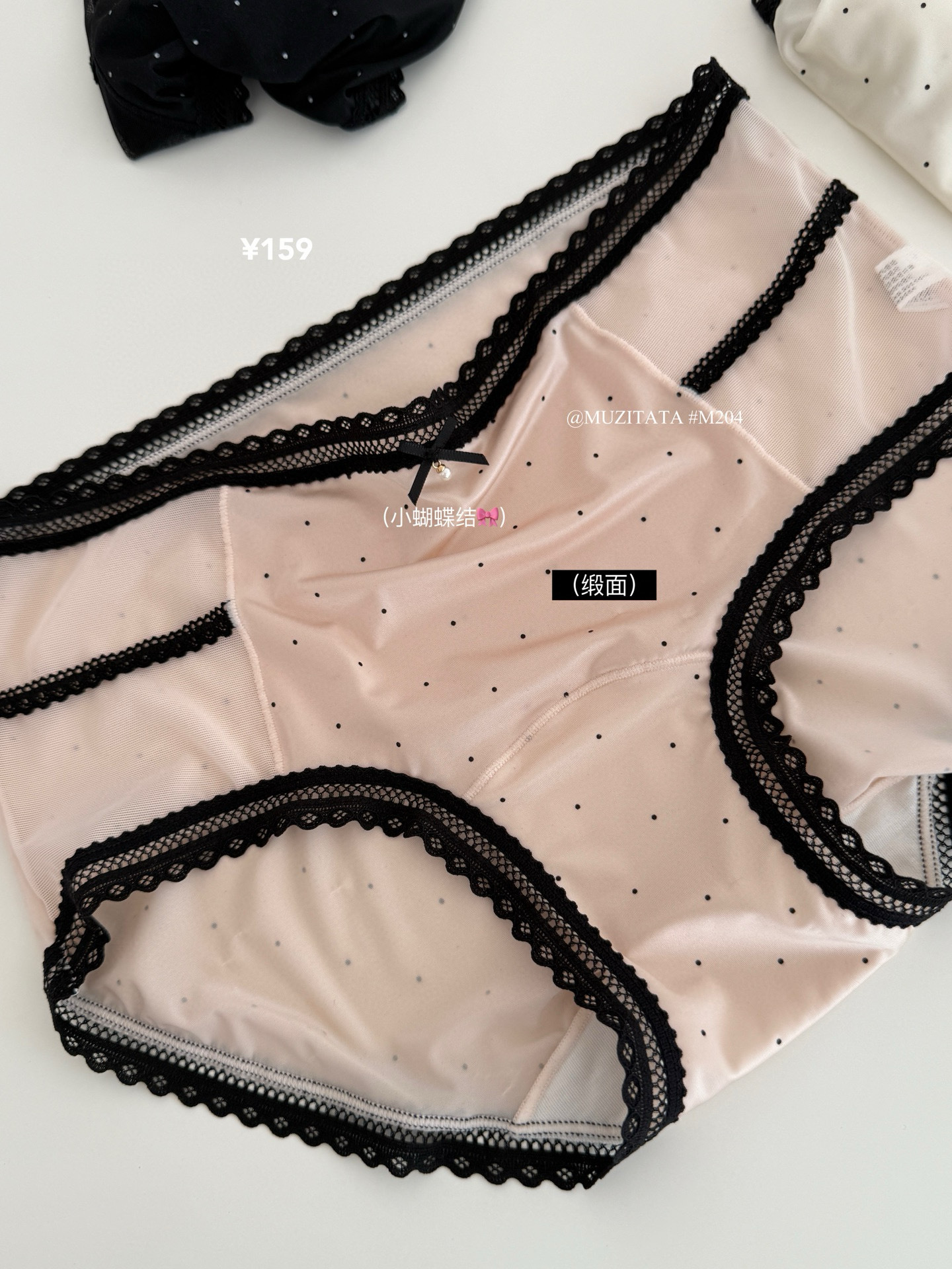 M204 일본 달콤한 요정 속옷 새틴 고탄력 레이스 항균 뽕나무 실크 폴카 도트 작은 나비 팬티 여성용스토어 가기