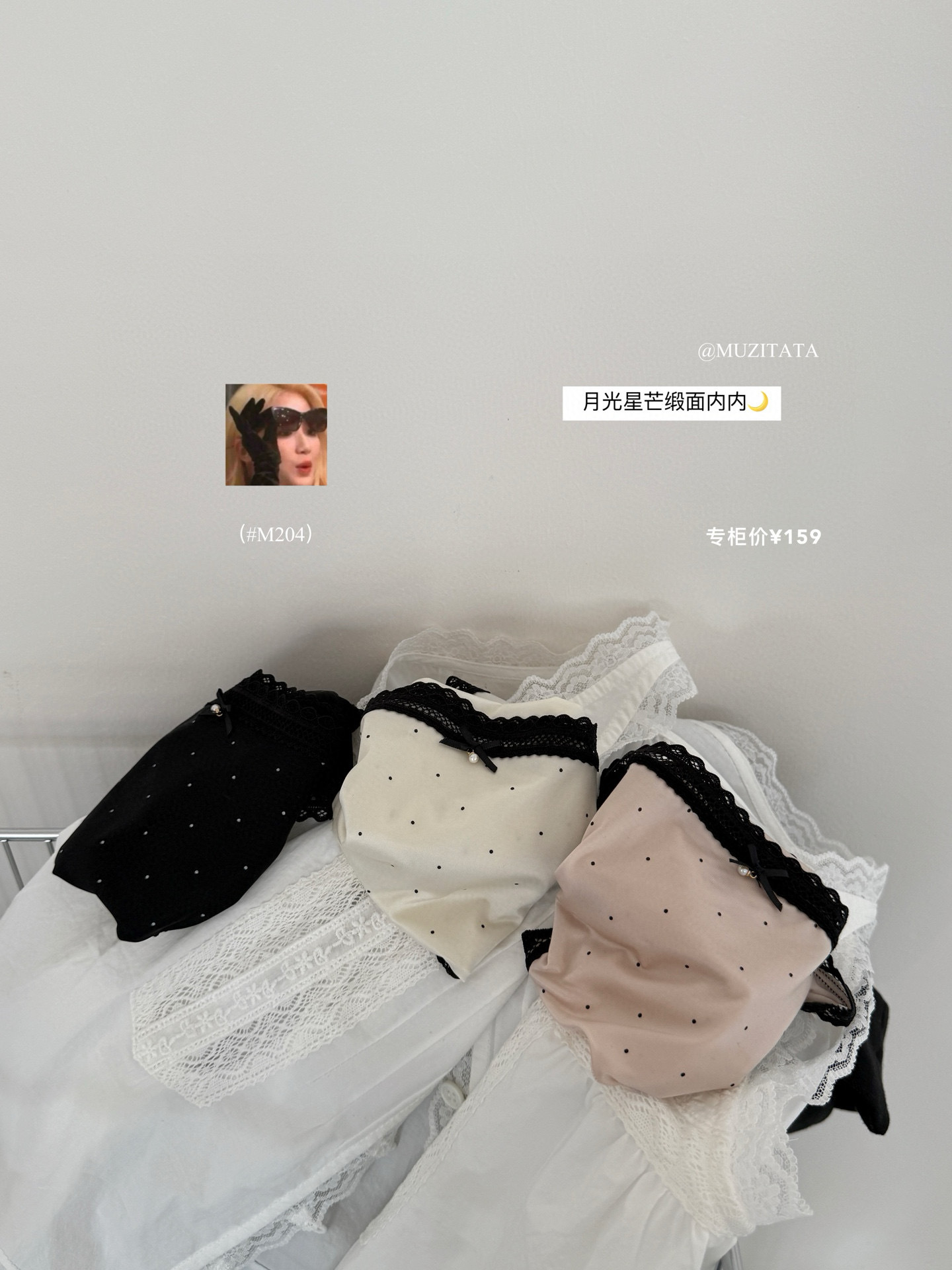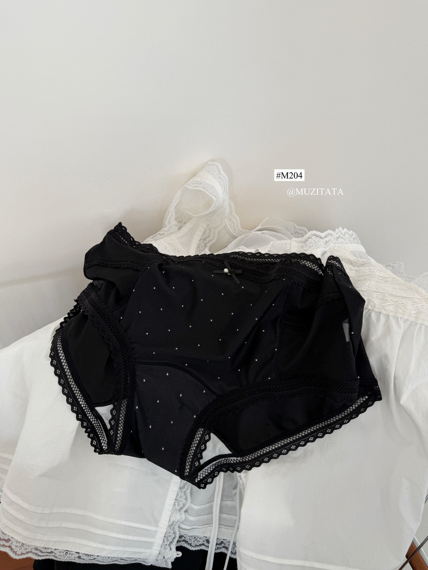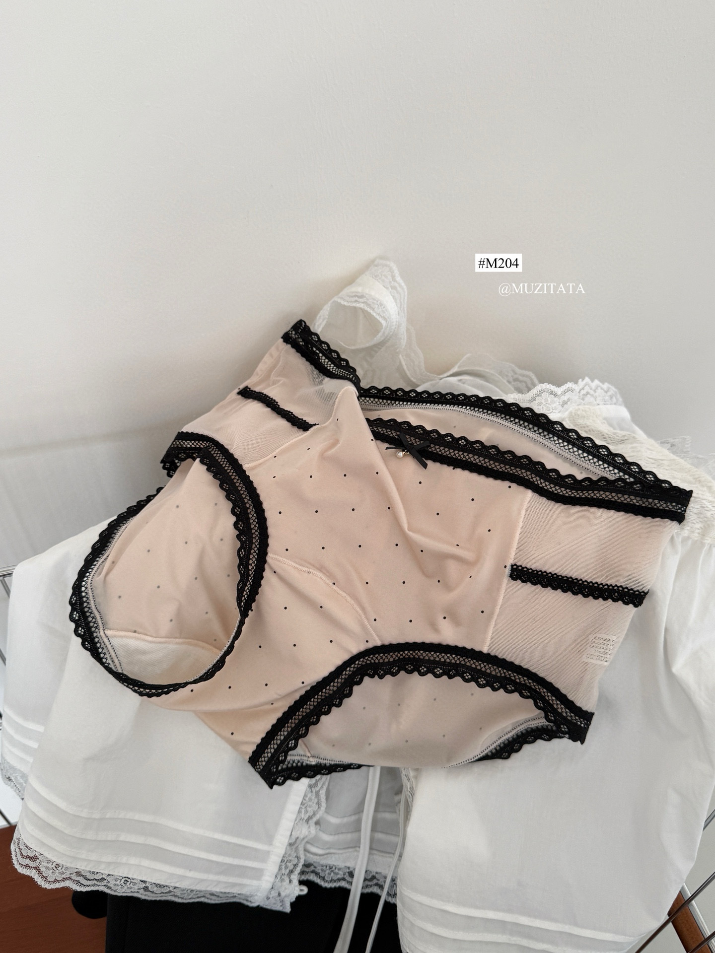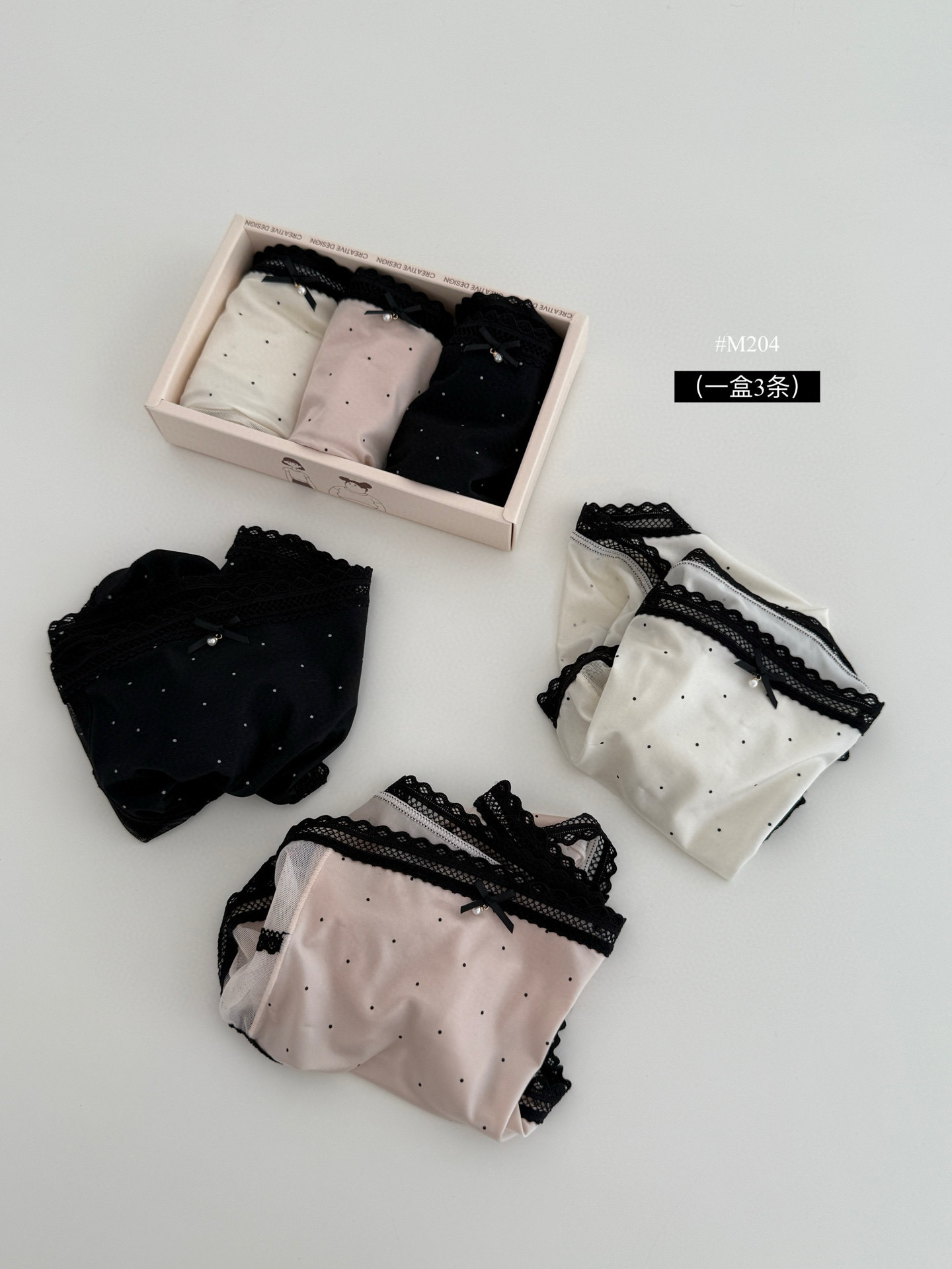 M204 일본 달콤한 요정 속옷 새틴 고탄력 레이스 항균 뽕나무 실크 폴카 도트 작은 나비 팬티 여성용스토어 가기