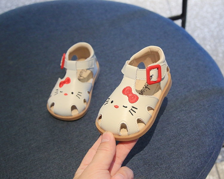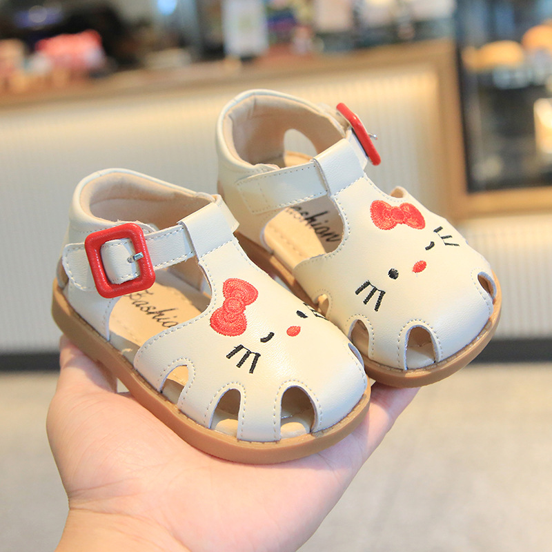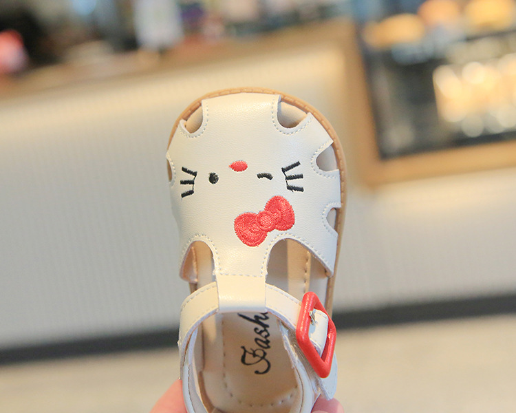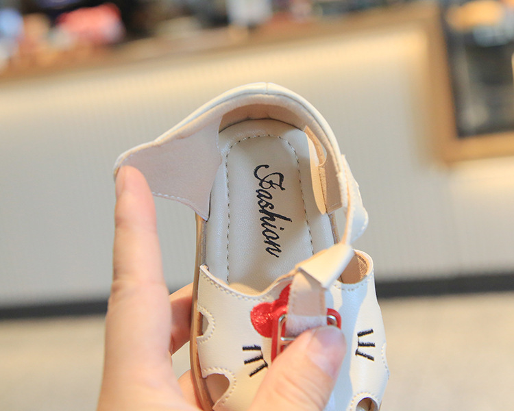 [19-28 사이즈] 여름 정품 가죽 소녀 샌들, 세련되고 귀여운 고양이 아기 소녀 공주 신발 도매 배송