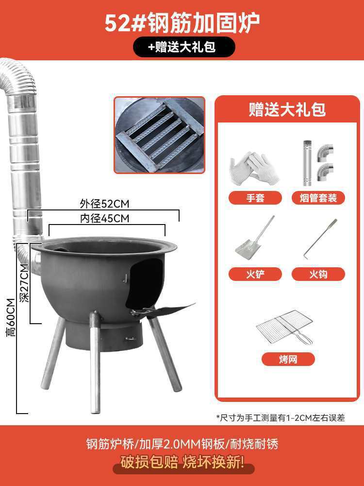 • 회색 상자가 있는 두꺼운 버전: 52cm+두께 2.7+스토브 링 3개+냄비+뚜껑(스테인리스 굴뚝 선물 패키지)