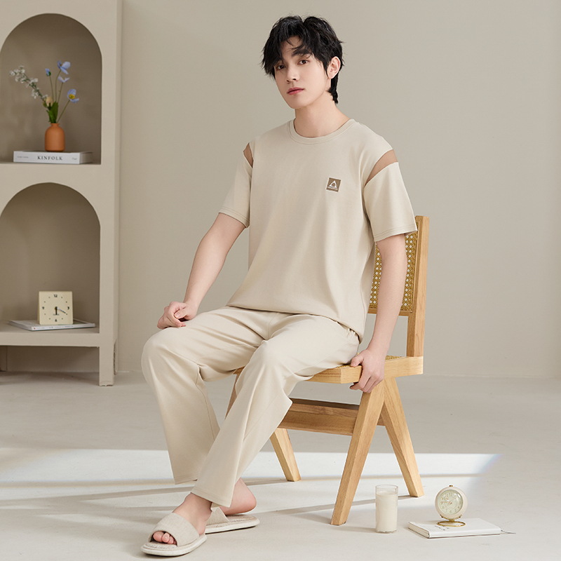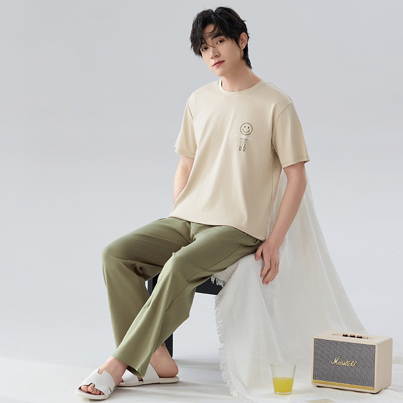클래스 A 항균 청소년 잠옷 남성 여름 순면 반팔 바지는 외부에서 착용 가능 순면 가정복 남성 정장