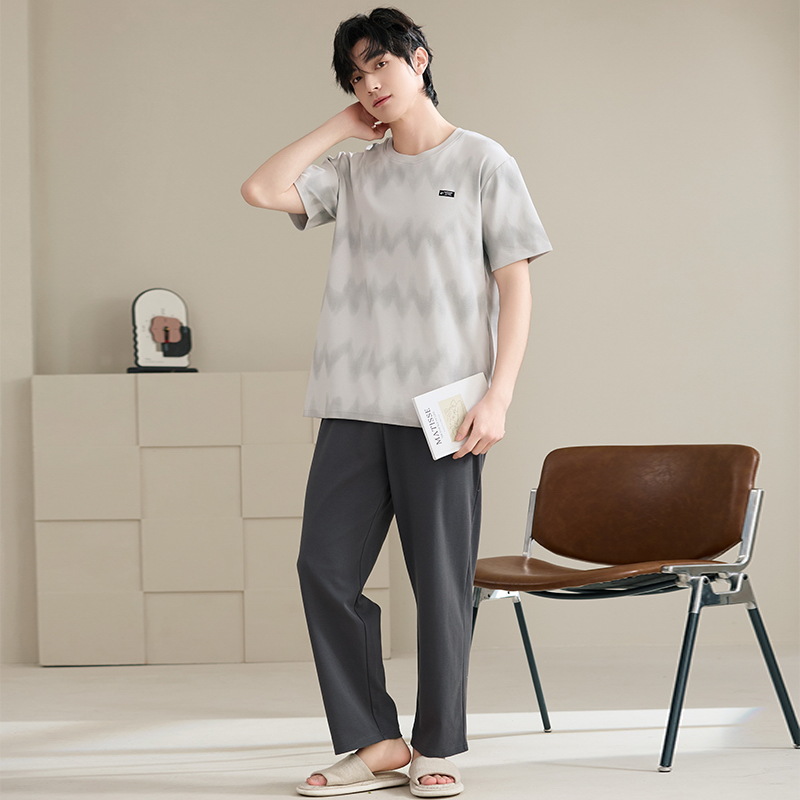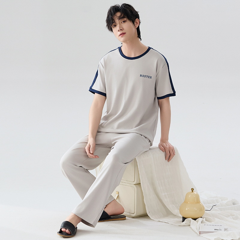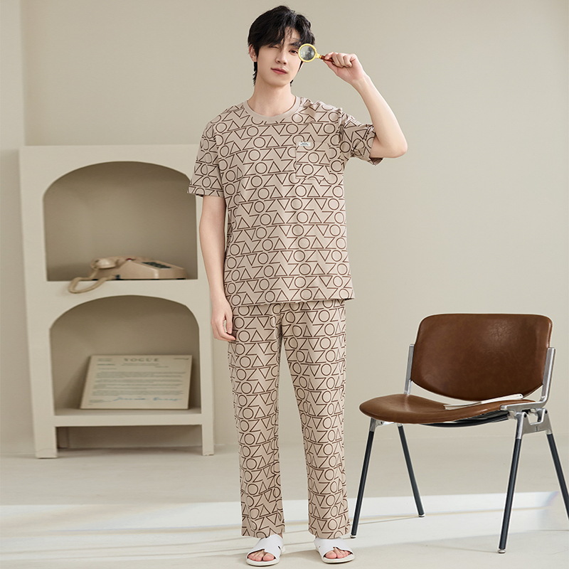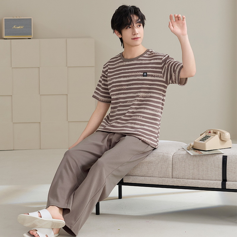 클래스 A 항균 청소년 잠옷 남성 여름 순면 반팔 바지는 외부에서 착용 가능 순면 가정복 남성 정장스토어 가기