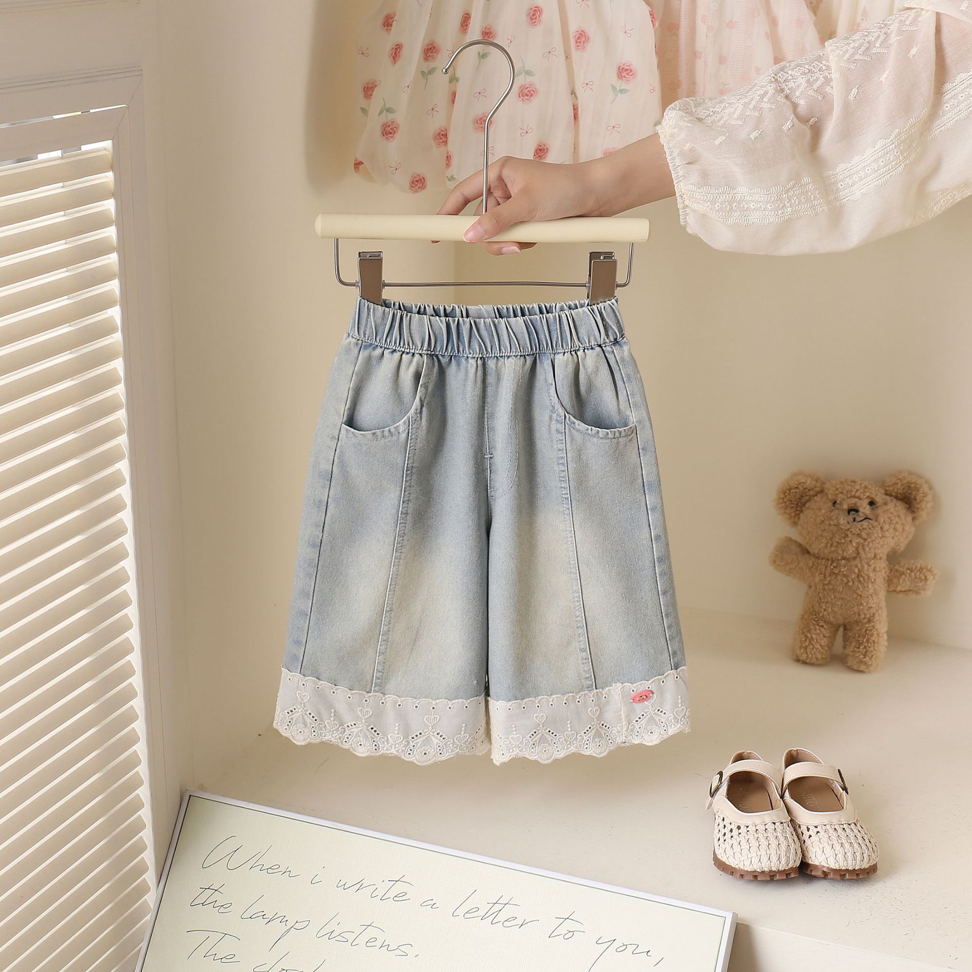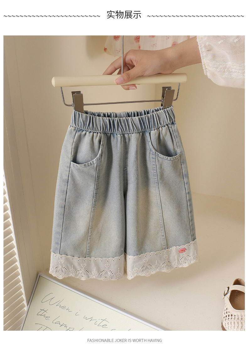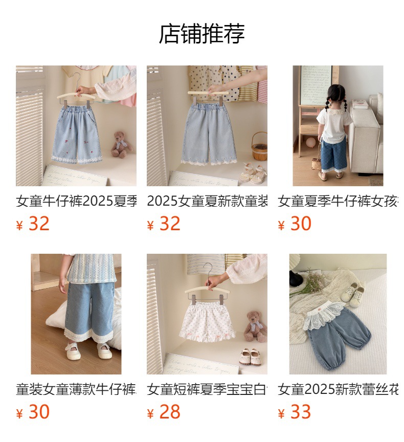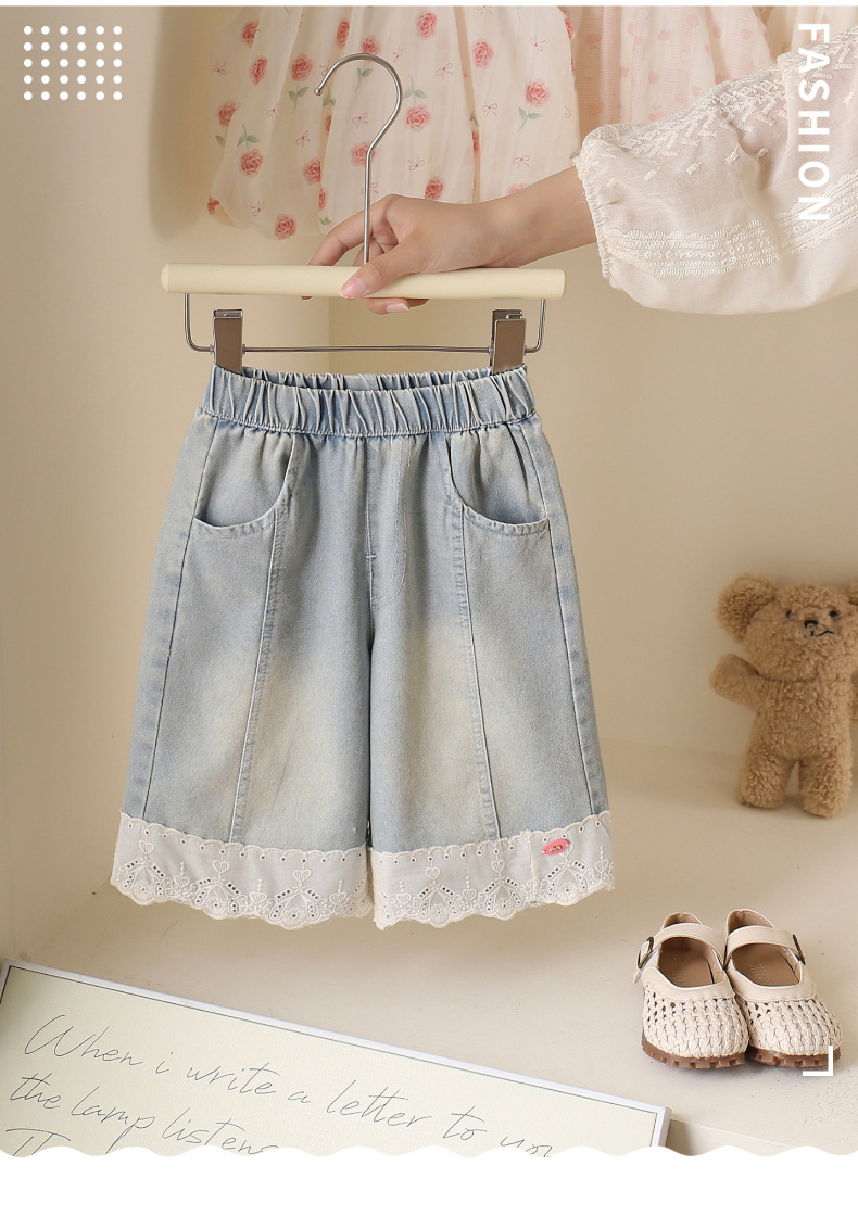 여아 레이스 청바지 여름 2025 신작 아동 한국어 버전 다용도 캐주얼 스트레이트 와이드 팬츠 베이비 팬츠스토어 가기