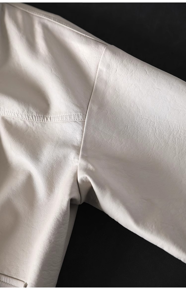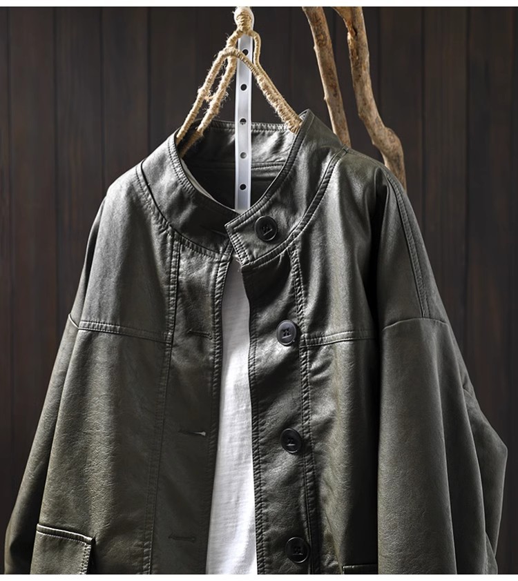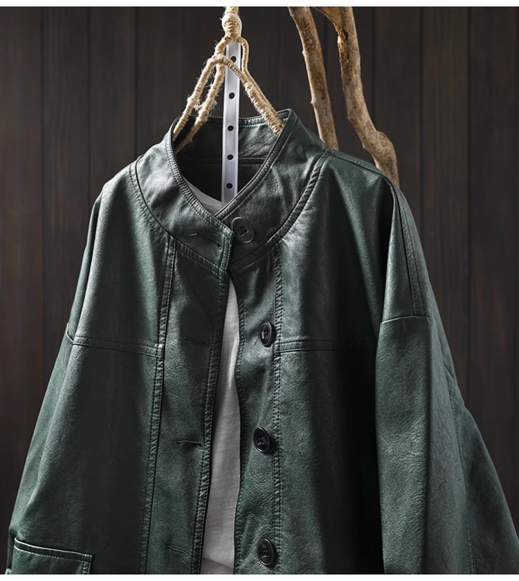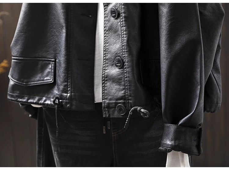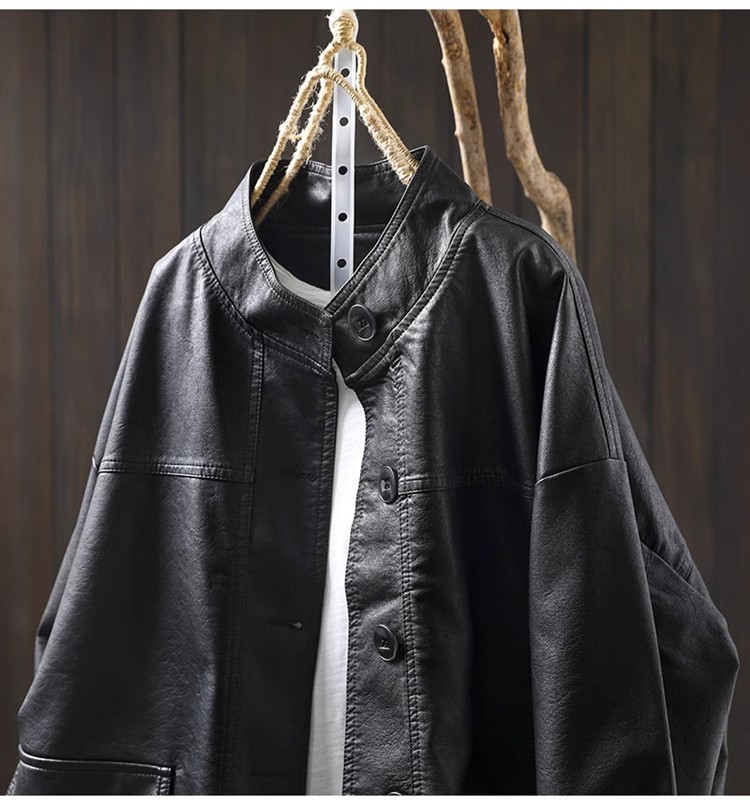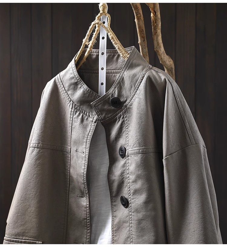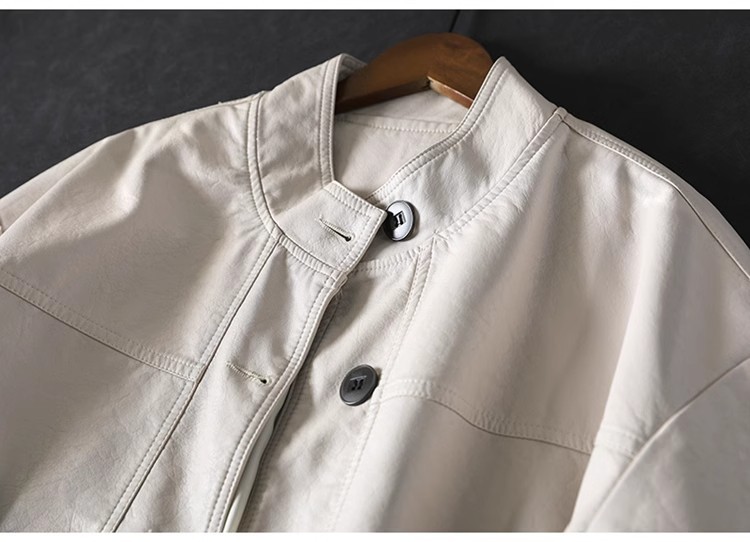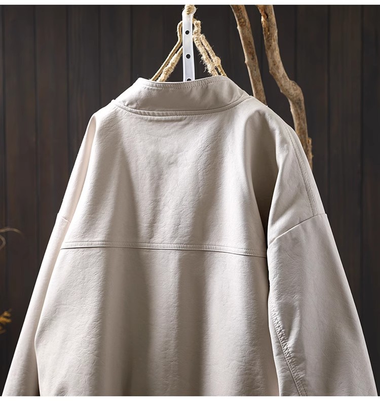 여성용 밑단 드로스트링 스탠드 칼라 PU 가죽 자켓, 짧고 루즈한 디자인, 봄, 가을 캐주얼하고 멋진 오토바이 자켓스토어 가기