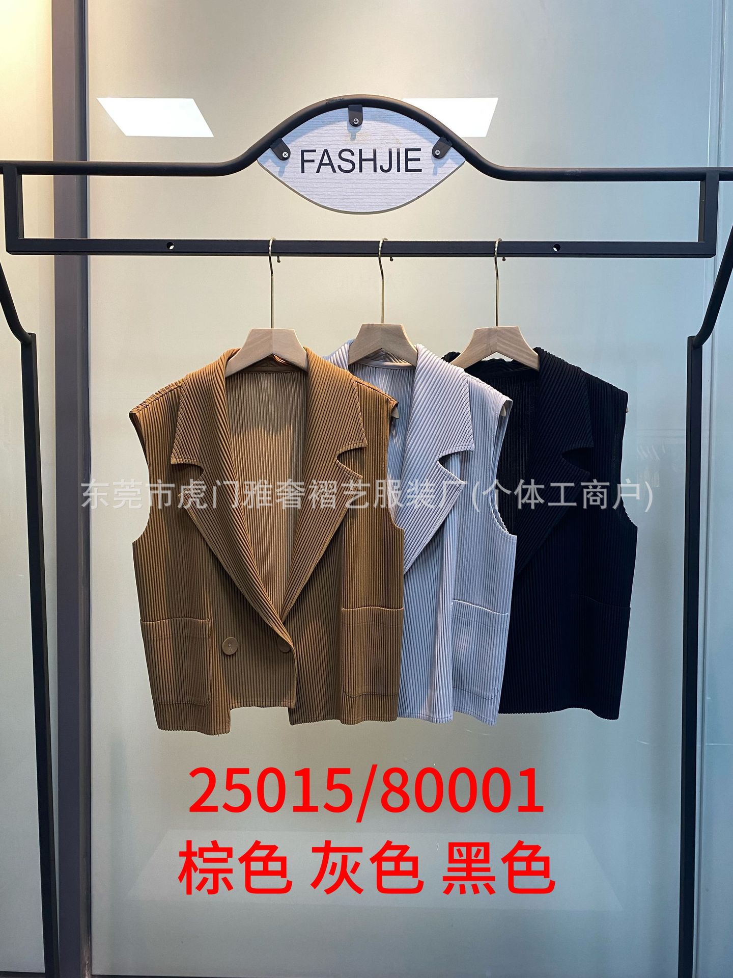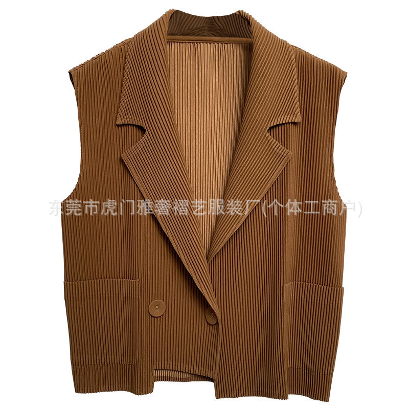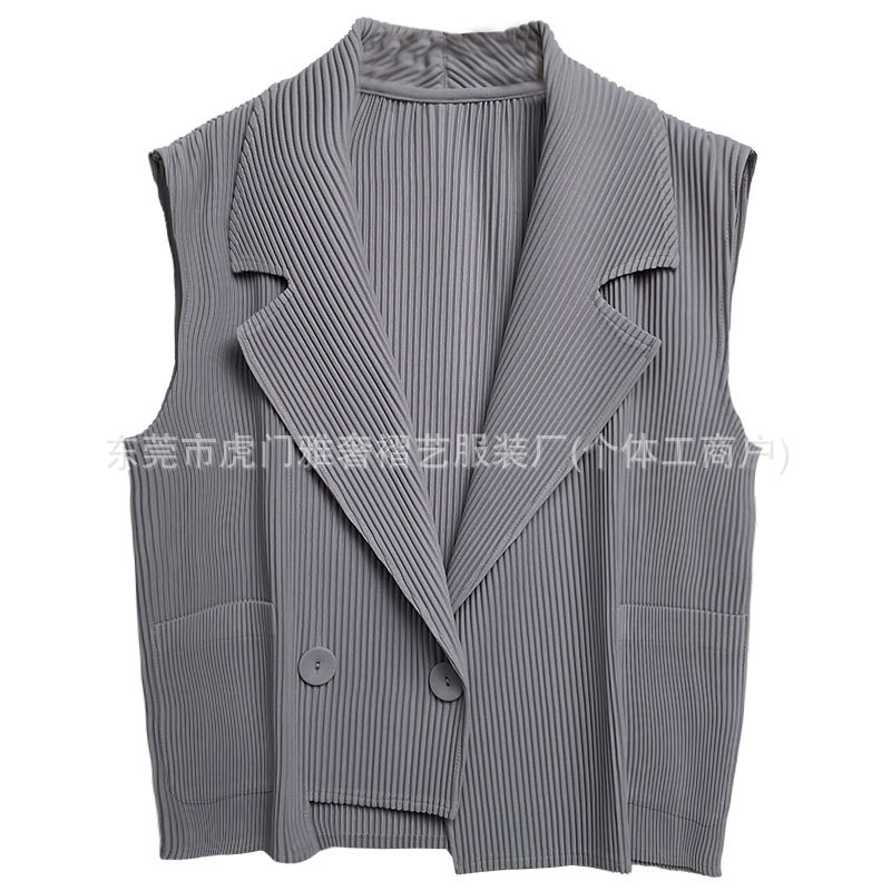 미야케 플리츠 여성용 두꺼운 이쑤시개 플리츠 조끼 패셔너블한 슈트 칼라 버튼 중간 길이의 우아한 아우터웨어 플리츠 아우터스토어 가기