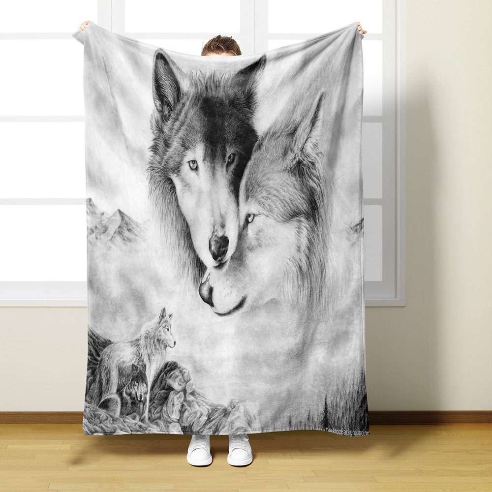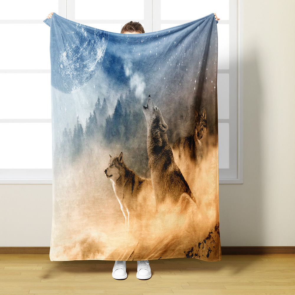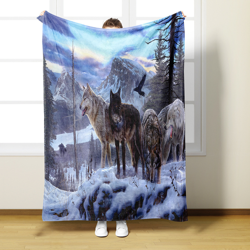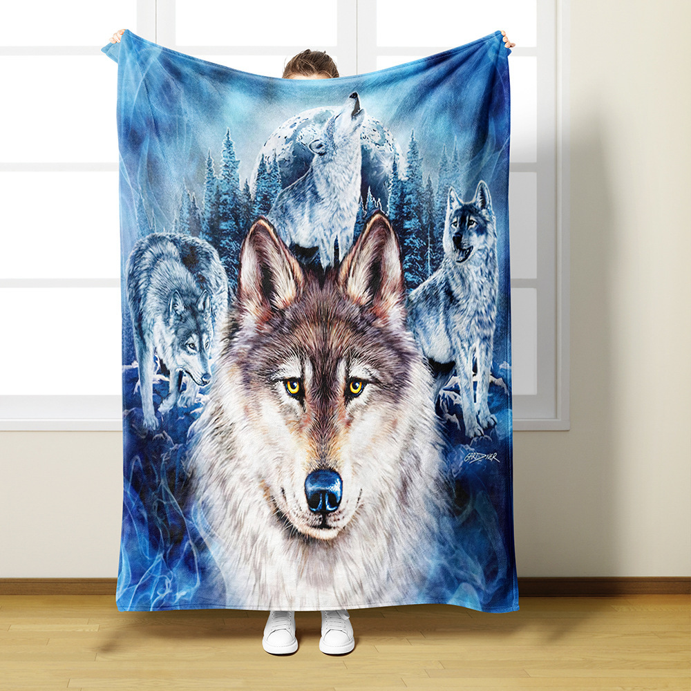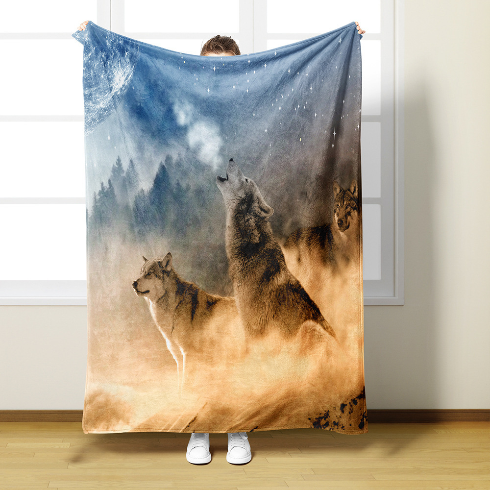 AliExpress 아마존 디지털 인쇄 플란넬 담요 3D 늑대 패턴 인쇄 단일 레이어 플란넬 담요